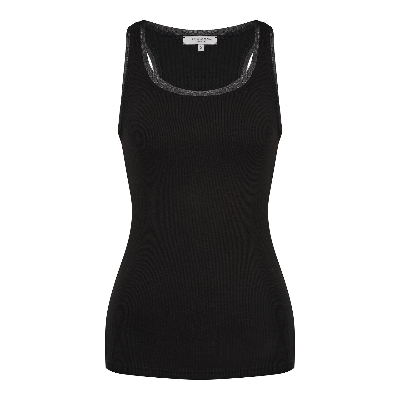 Майка с сеткой черно цвета - та самая база, которая спасет любой образ.