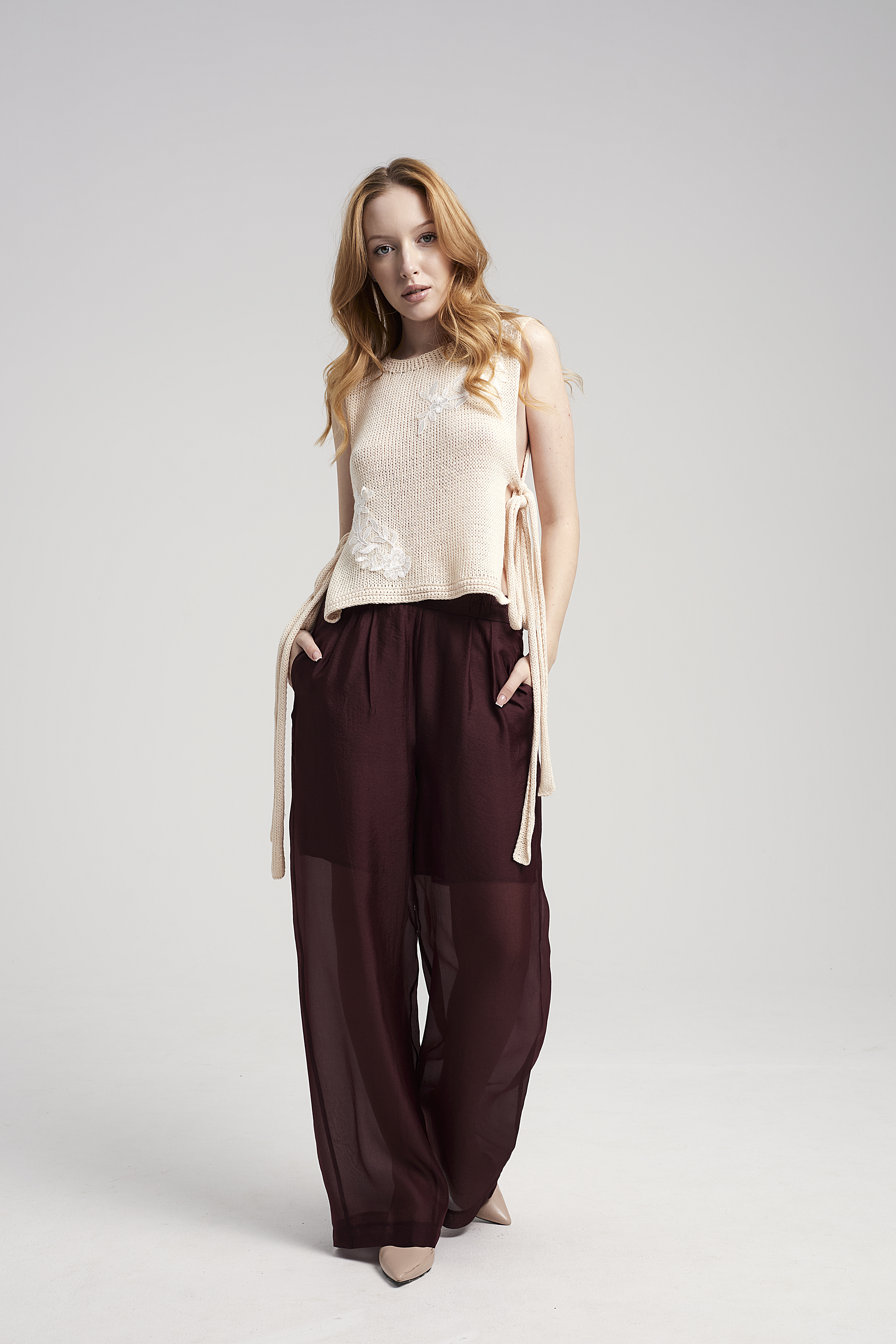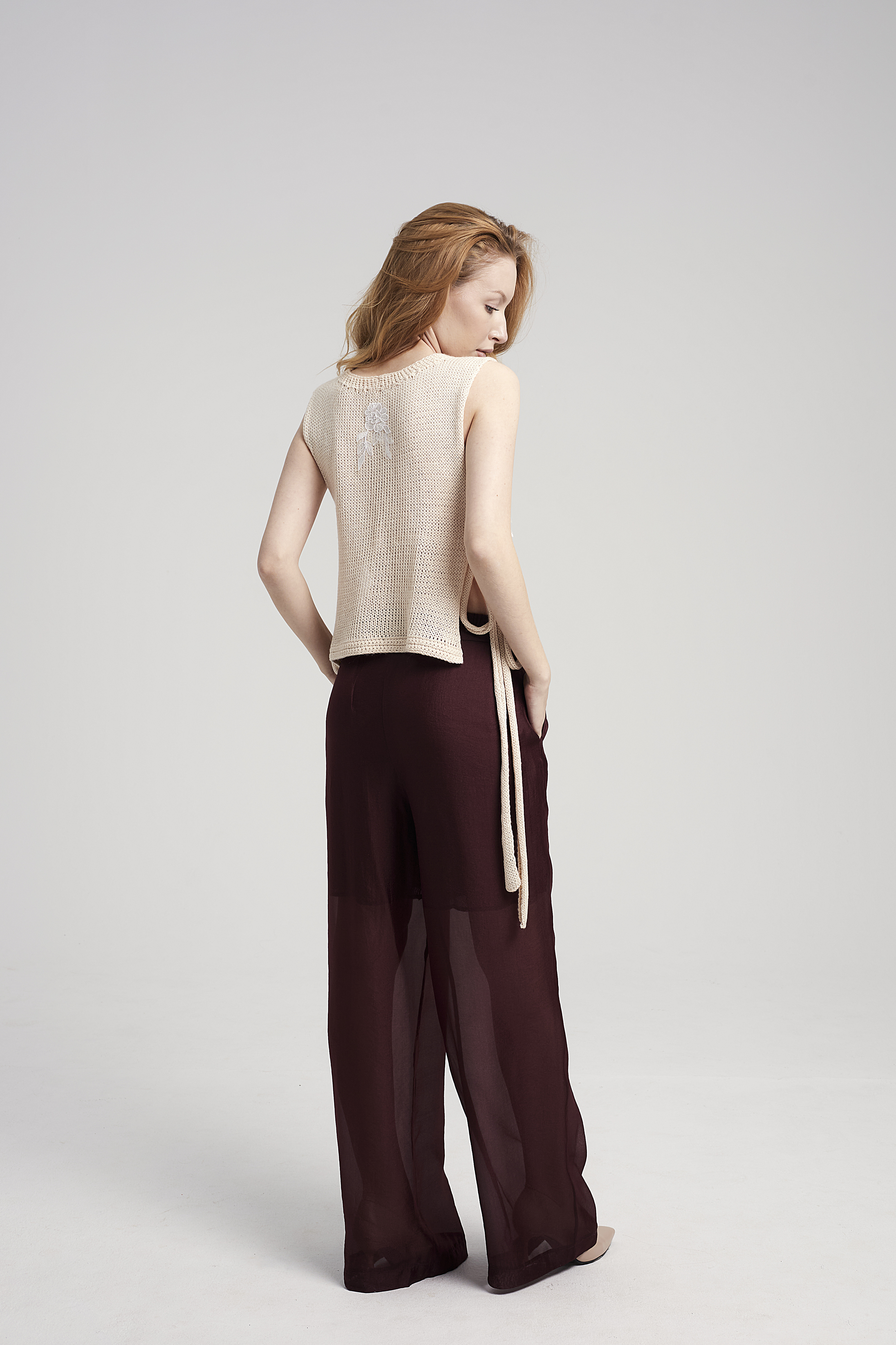 Очень приятная и легкая ткань. Топ на завязках из вискозы, идеальный вариант на лето Состав ткани:  ONESIZE, подойдет на размер от XS до M Выбирайте вниз Брюки Sensitive, чтобы составить полный образ