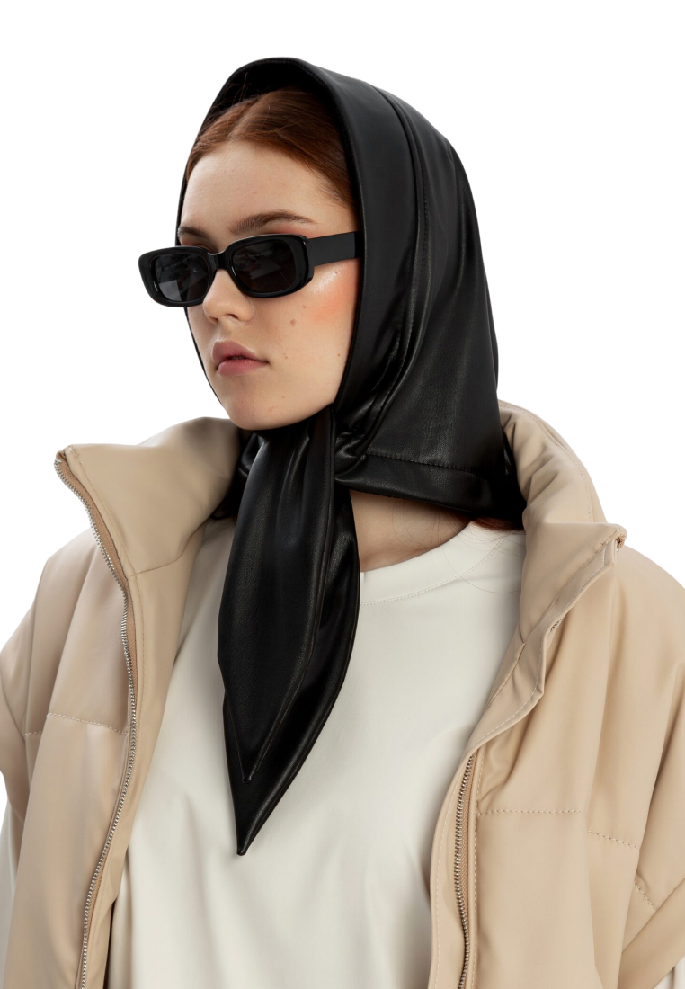 Косынка SECRET из экокожи – не только стильный головной убор, но и прекрасная альтернатива капюшонам и шапкам. Благодаря плотности верхнего материала держит форму, защищает от дождя, ветра, а подклад из текстиля не скользит на голове. Концы косынки можно зафиксировать спереди или завязать сзади. Такую косынку можно носить как головной убор или повязать как шарф.