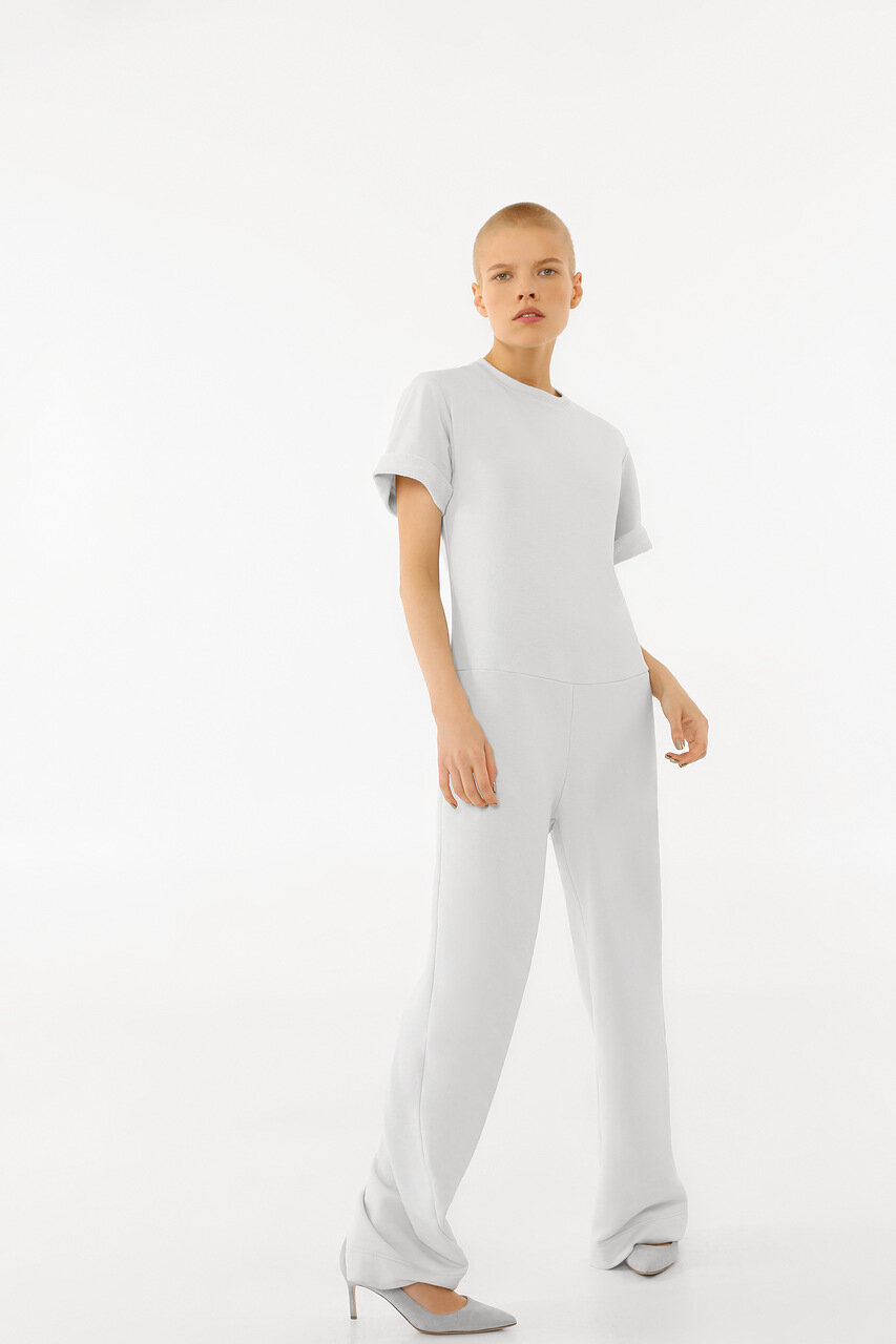 Комбинезон с карманами пустого белого окраса из хлопкового футера трехнитки.