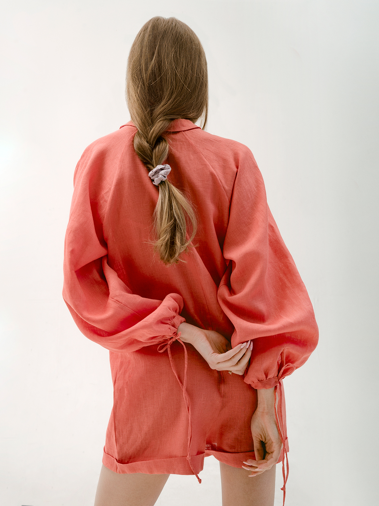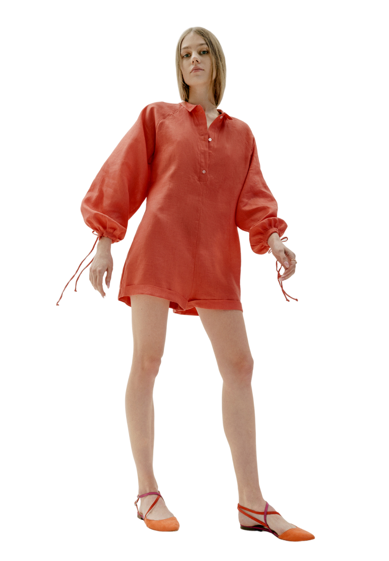 Льняной комбинезон с длинным рукавом, который создает расслабленный и в то же время не будничный образ: объемные рукава собираются на завязки, а форма — для расслабленной и практичной интерпретации. Пусть этот комбинезон из натурального, по-настоящему летнего льна, поможет вам ощутить весь спектр прекрасного. Комбинезон имеет уникальное сочетание комбинезона и удлиненной рубашки с длинным рукавом, благодаря этому Вы можете с легкостью сочетать его с любой одеждой и обувью, использовать для разных мероприятий, создавая бесчисленное количество образов на любой случай жизни: от коктейльной вечеринки, до обычного похода в магазин.