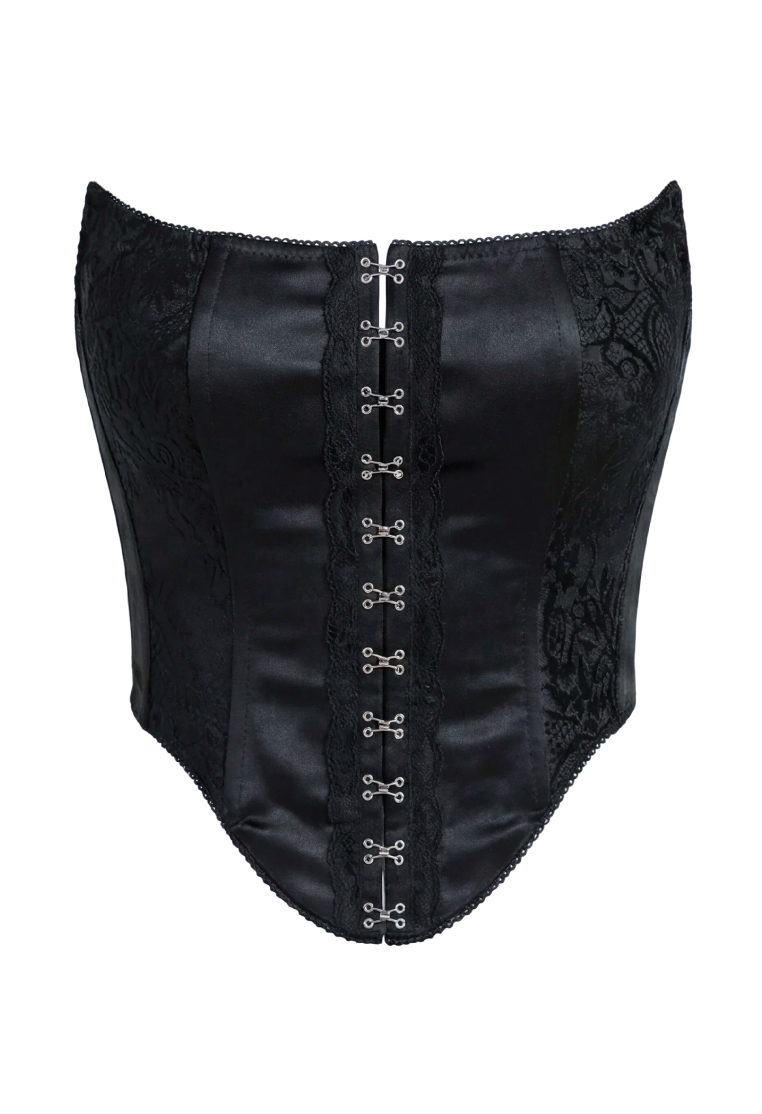 Корсет, но не как у всех. Этот топ-корсет подчёркивает талию благодаря фигурному поясу и чёткой посадке. Жёсткий, как твои стандарты, и при этом женственный до последней строчки. Идеально сочетается с юбками, брюками или тем, кто не боится заявить о себе. Архитектура тела в формате ready-to-wear — когда корсет не про сковывать, а про подчеркивать.