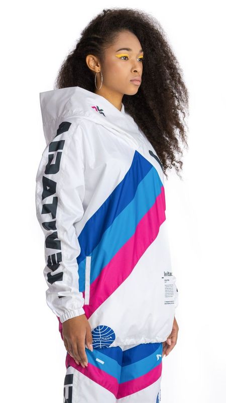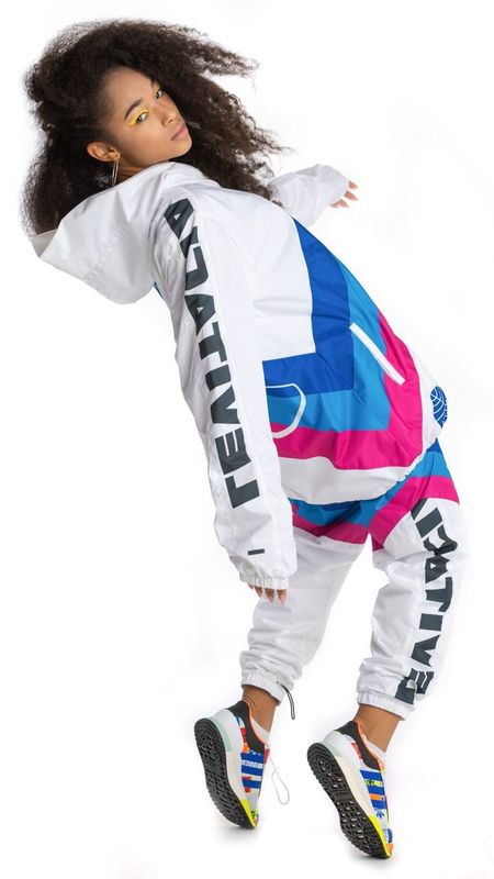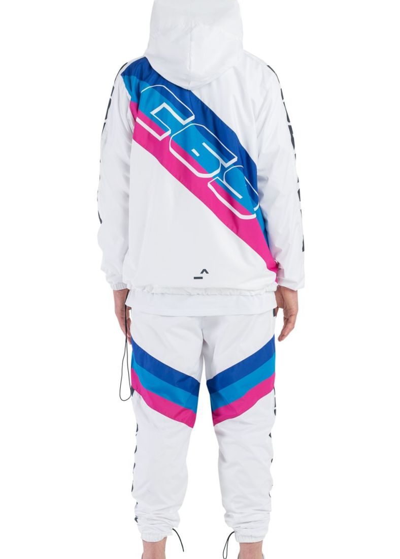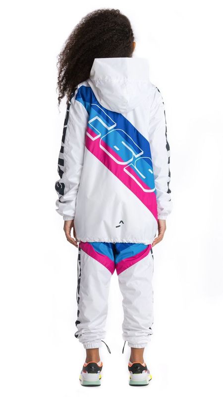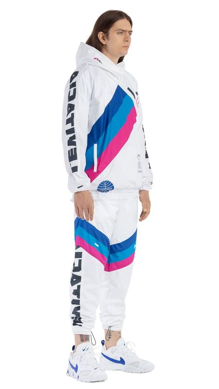 Легкий анорак и джоггеры позволят оставаться стильным и чувствовать себя комфортно при тёплой, или ветреной погоде. Имеется система регулировки объема нижней части изделия.
