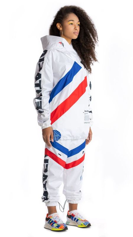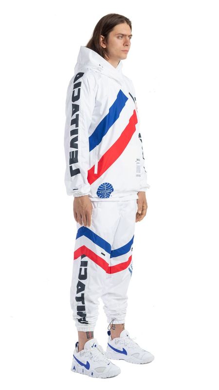 Легкий анорак и джоггеры позволят оставаться стильным и чувствовать себя комфортно при тёплой, или ветреной погоде. Имеется система регулировки объема нижней части изделия.