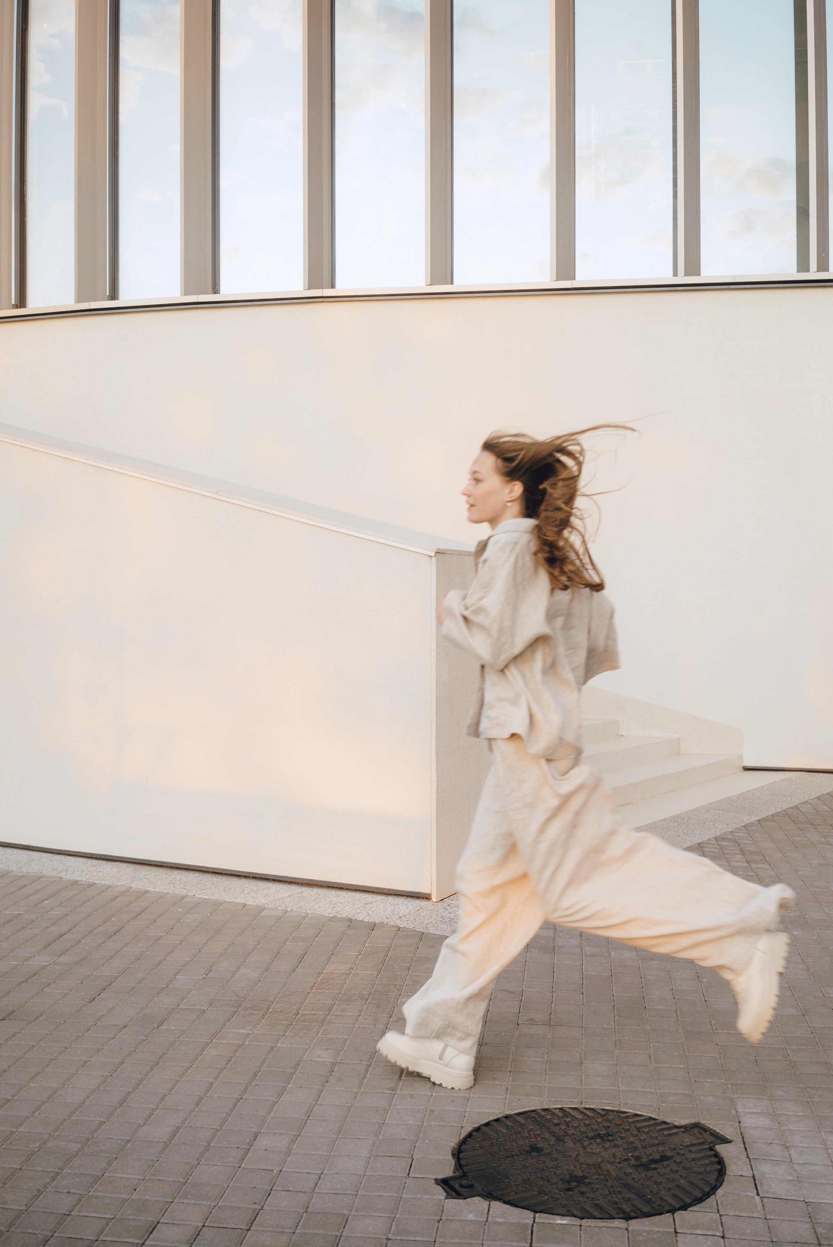 Костюм –  воплощение спокойной силы и тонкой чувственности. Его мягкий оттенок напоминает утренний туман, окутывающий кожу теплом и загадкой. Силуэт свободный, но точный — он не подчёркивает, а намекает. Этот костюм для женщины, в которой нежность всегда соседствует с внутренней...