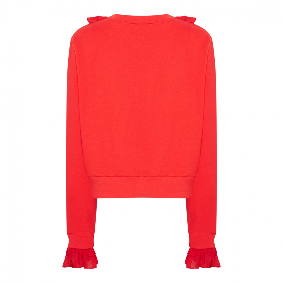 Очаровательный свитшот из хлопкового футера, украшен женственными оборочками из батиста по вороту и обшлагам рукавов. Внутри комфортный, мягкий, в меру теплый, без начеса. Свободные брюки из хлопкового футера, с поясом на резинке, с боковыми карманами, дополнены регулирующим шнурком и металлической фурнитурой золотого цвета. Комфортные, составят достойный образ в расслабленном стиле со свитшотом, футболкой или рубашкой.