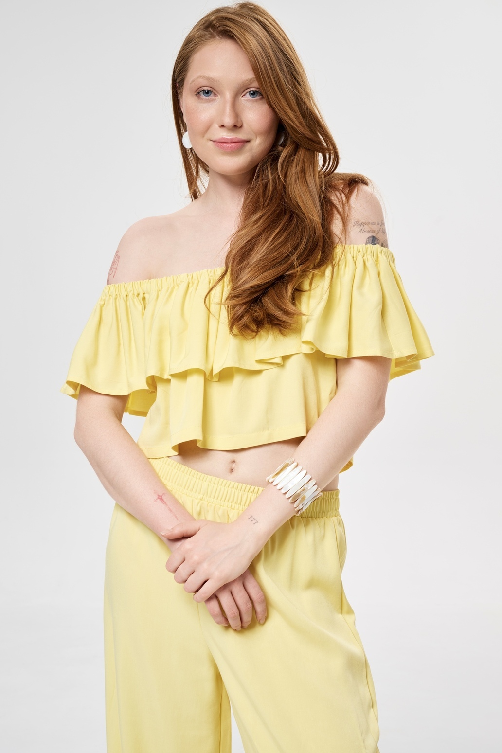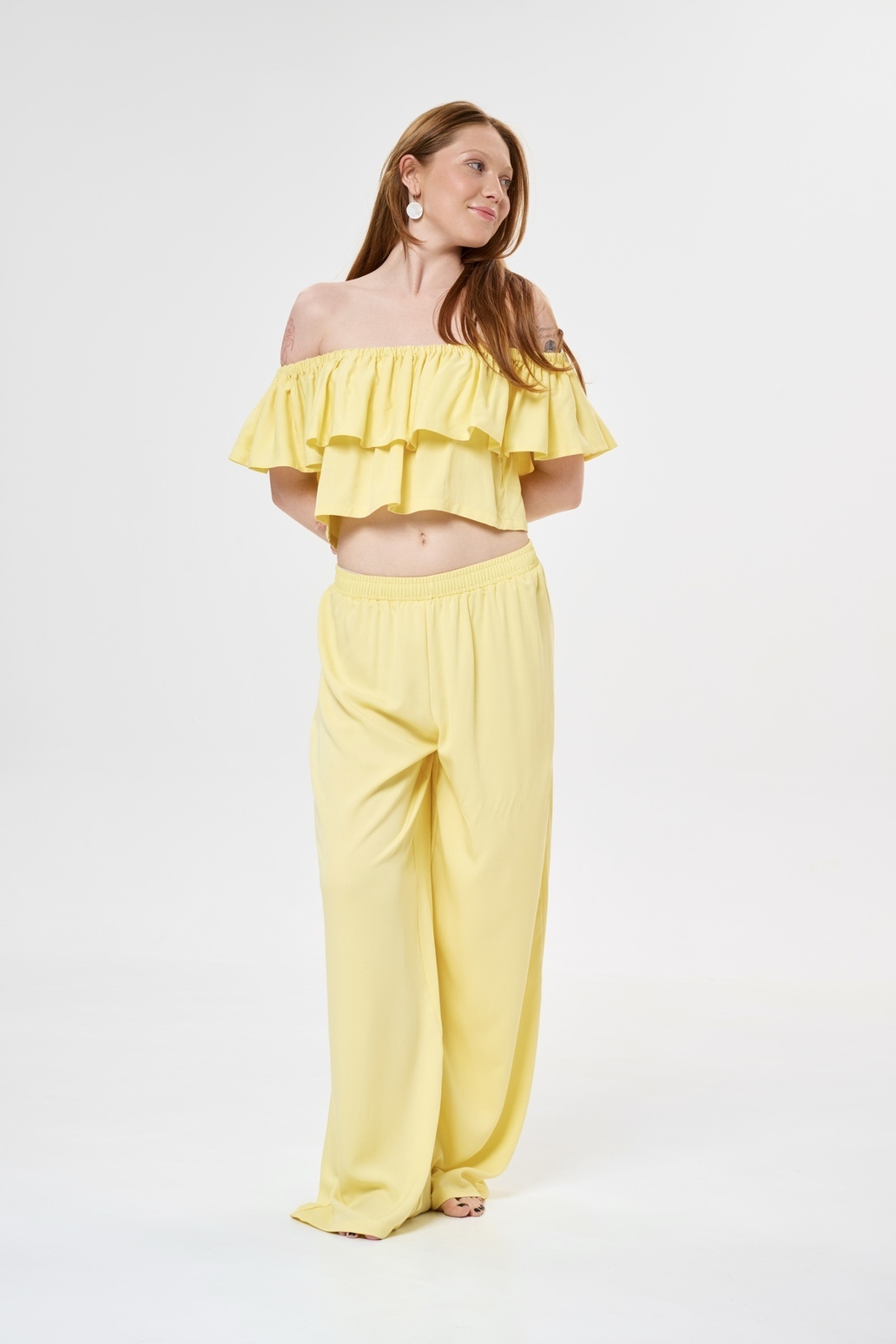 Этот комплект идеально подходит для создания элегантного образа в жаркие дни благодаря своему легкому и воздушному материалу.