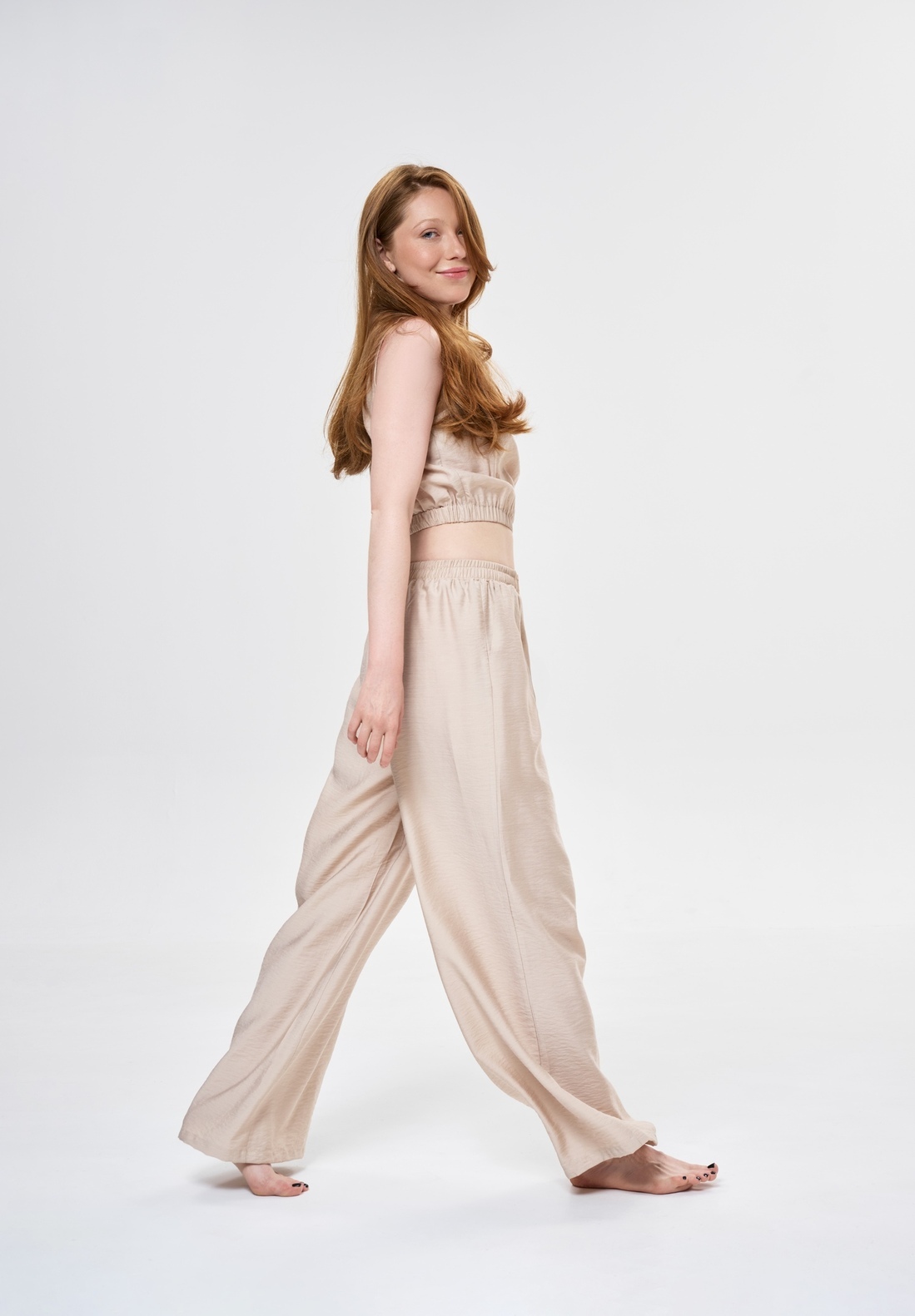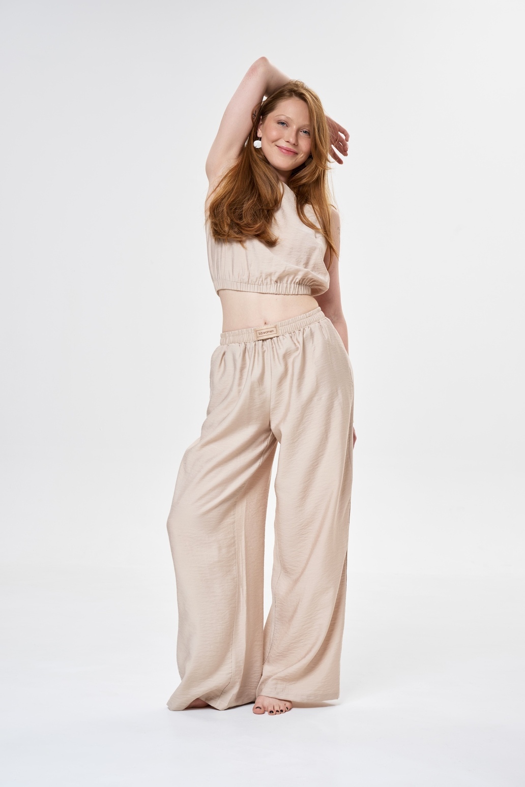 Этот комплект идеально подходит для создания элегантного образа в жаркие дни благодаря своему легкому и воздушному материалу.