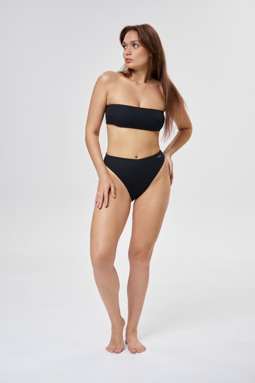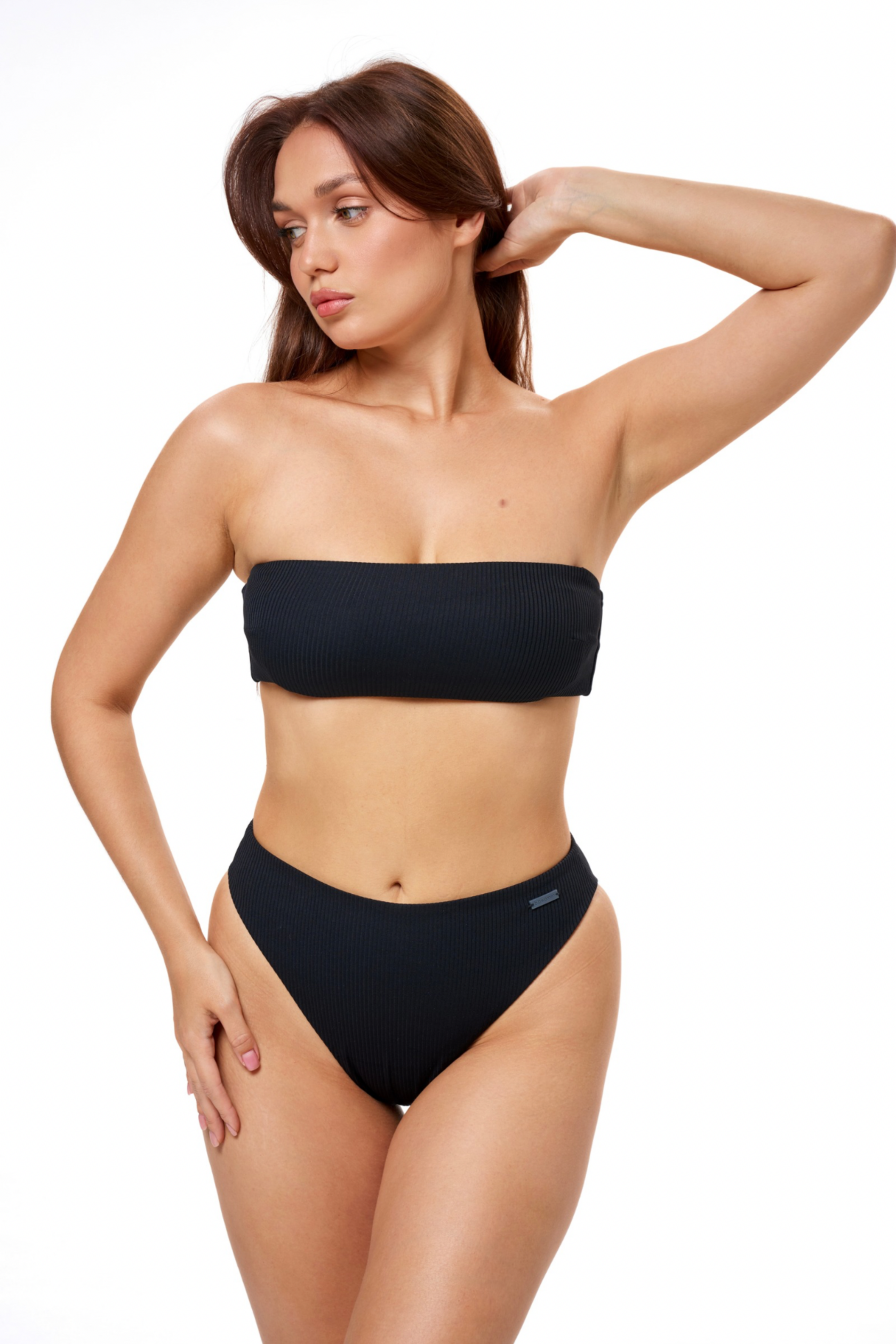 Купальный лиф Бандо в рубчик Black
