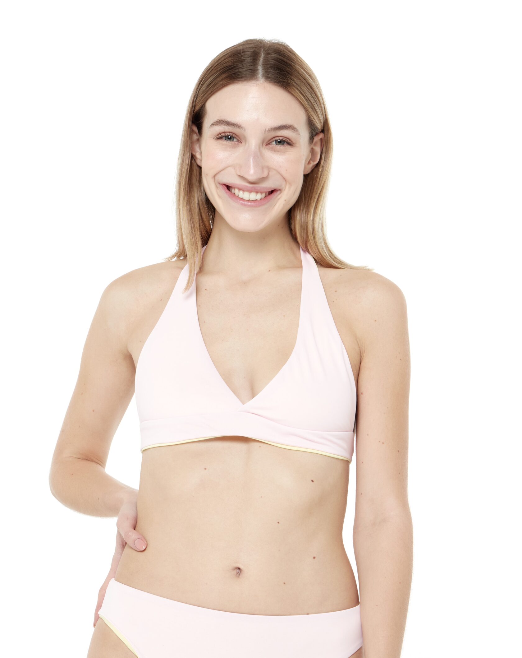 Двусторонний купальник- это два в одном. С одной стороны сливочный, а с другой - розовый. Да-да, его можно перевернуть и носить другой стороной!