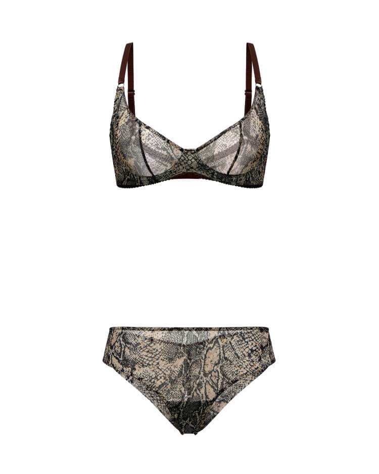 Дерзкий, анималистичный принт для самых смелых девушек. Форма бра – балконет. Отлично садится по форме груди и приподнимает её.