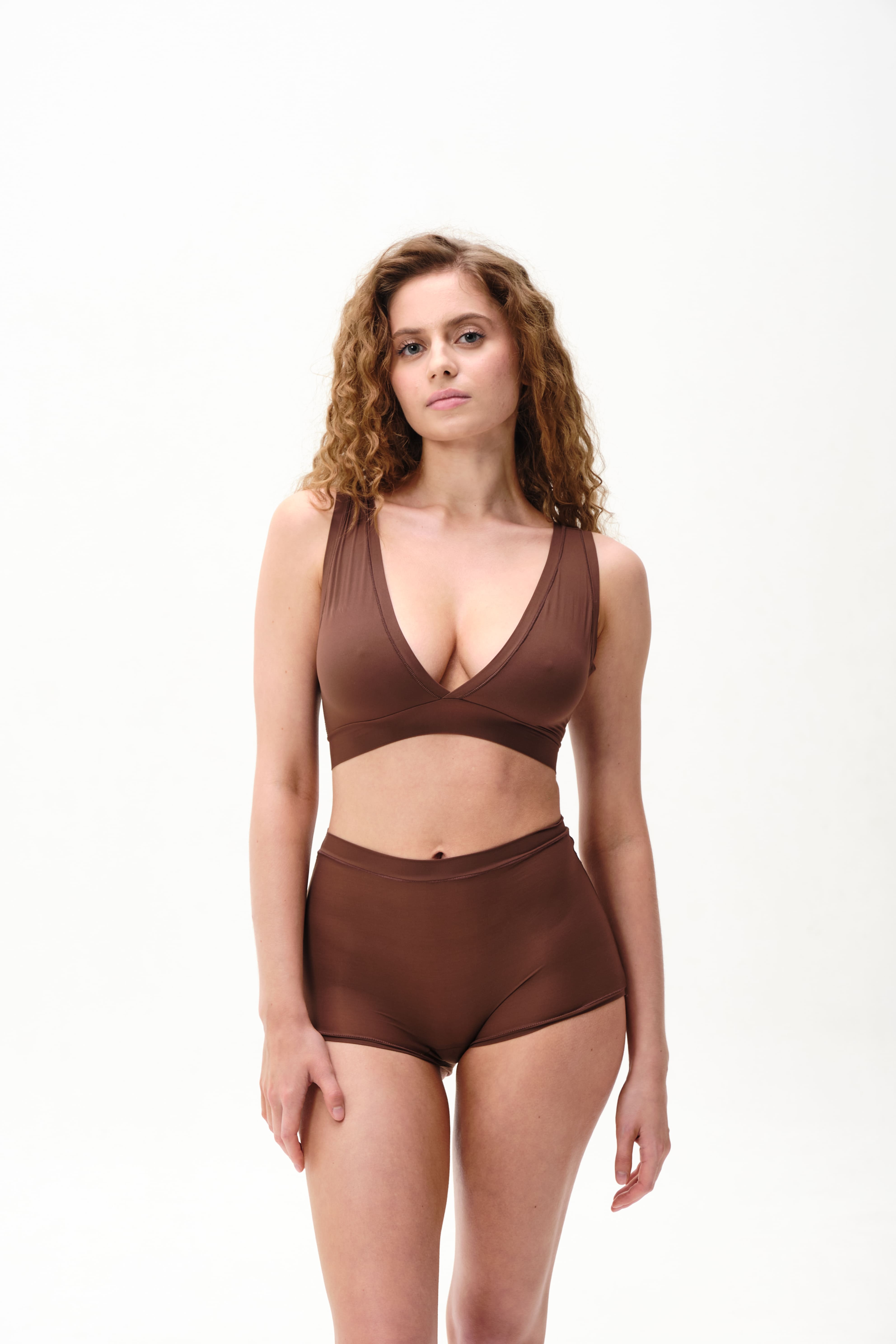 Тянущийся материал обеспечивает посадку на любой размер от XS до XL. Парвада сохраняет форму, быстро сохнет и незаметна под одеждой.