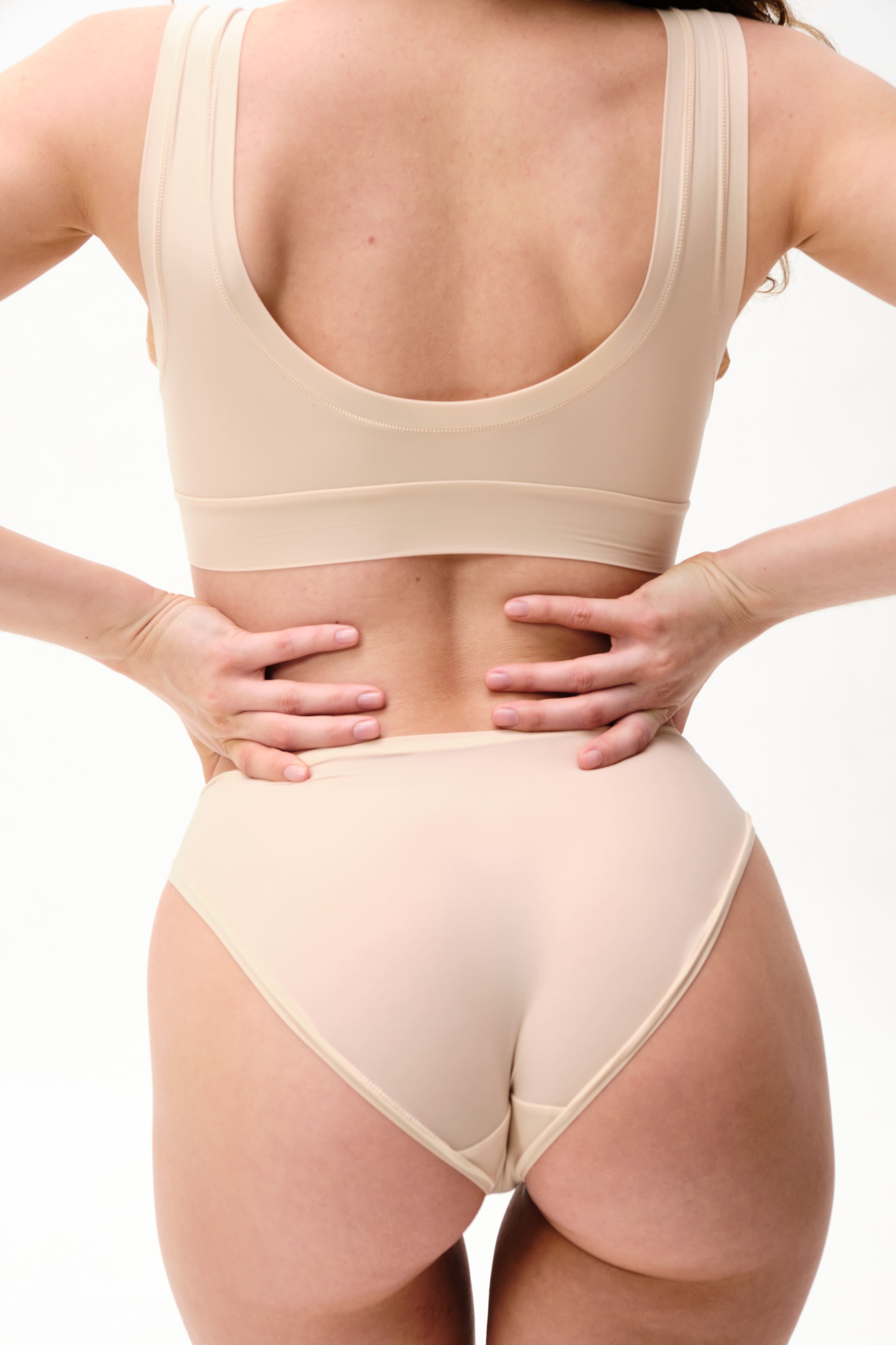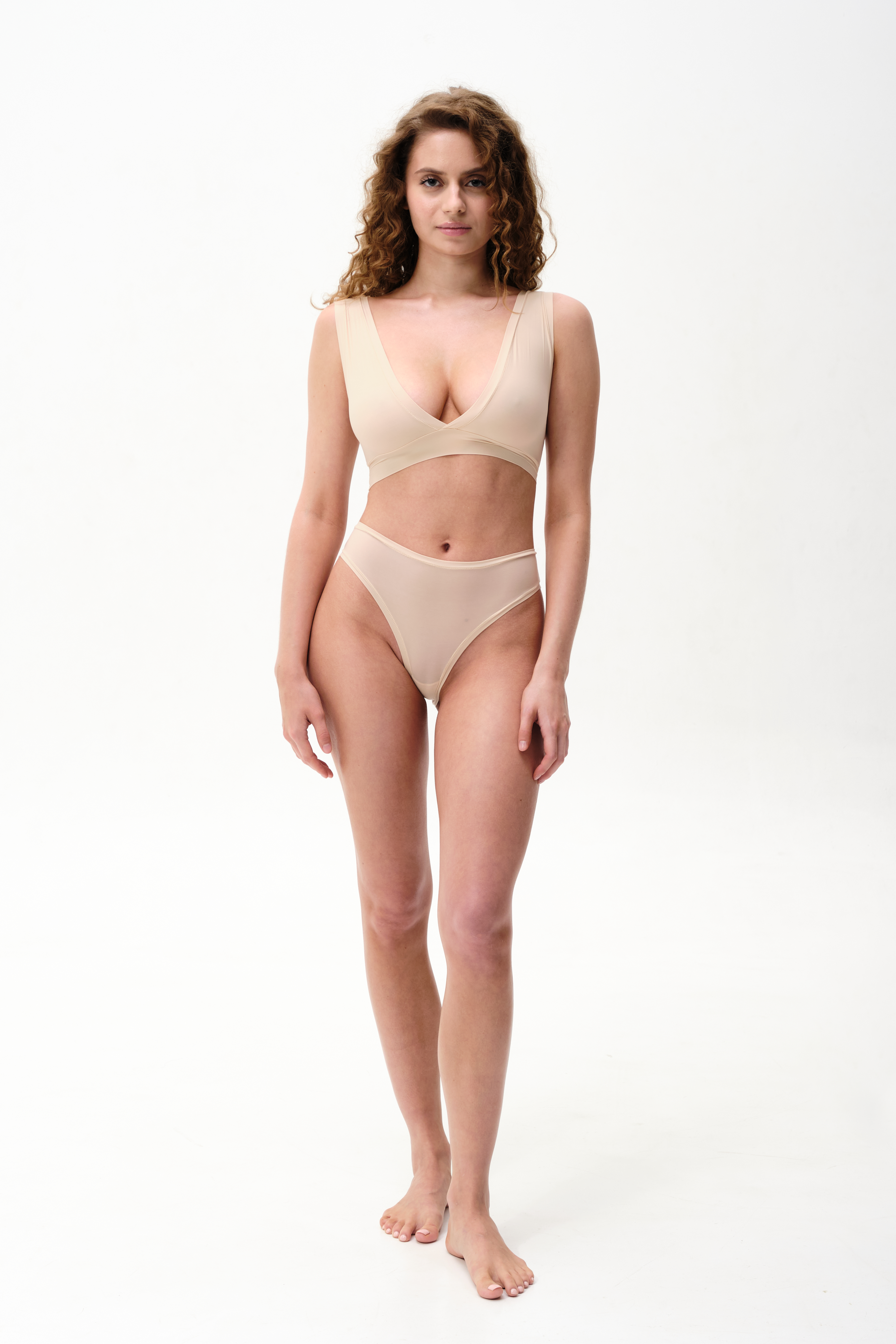 Тянущийся материал обеспечивает посадку на любой размер от XS до XL. Парвада сохраняет форму, быстро сохнет и незаметна под одеждой.
