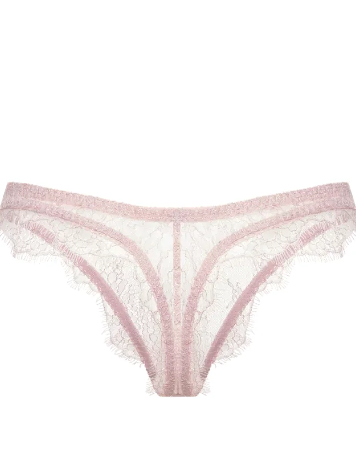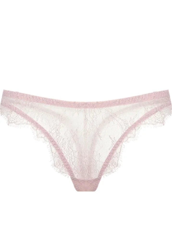 Стринги Lila Venezia выполнены из тонкого полупрозрачного кружева в мягком розовом оттенке. Вдохновлённые итальянской классикой, они сочетают утончённость линий и продуманную посадку. Крой подчёркивает линию бёдер, а эластичный пояс и края с деликатной отделкой создают воздушную форму.