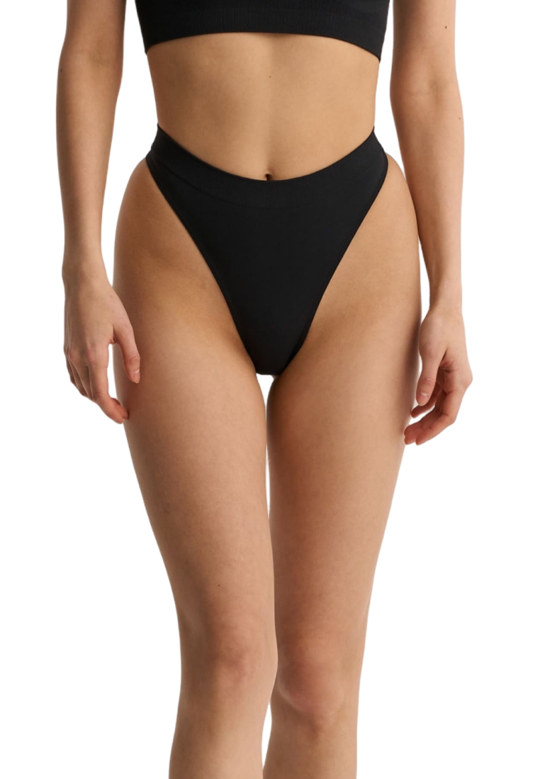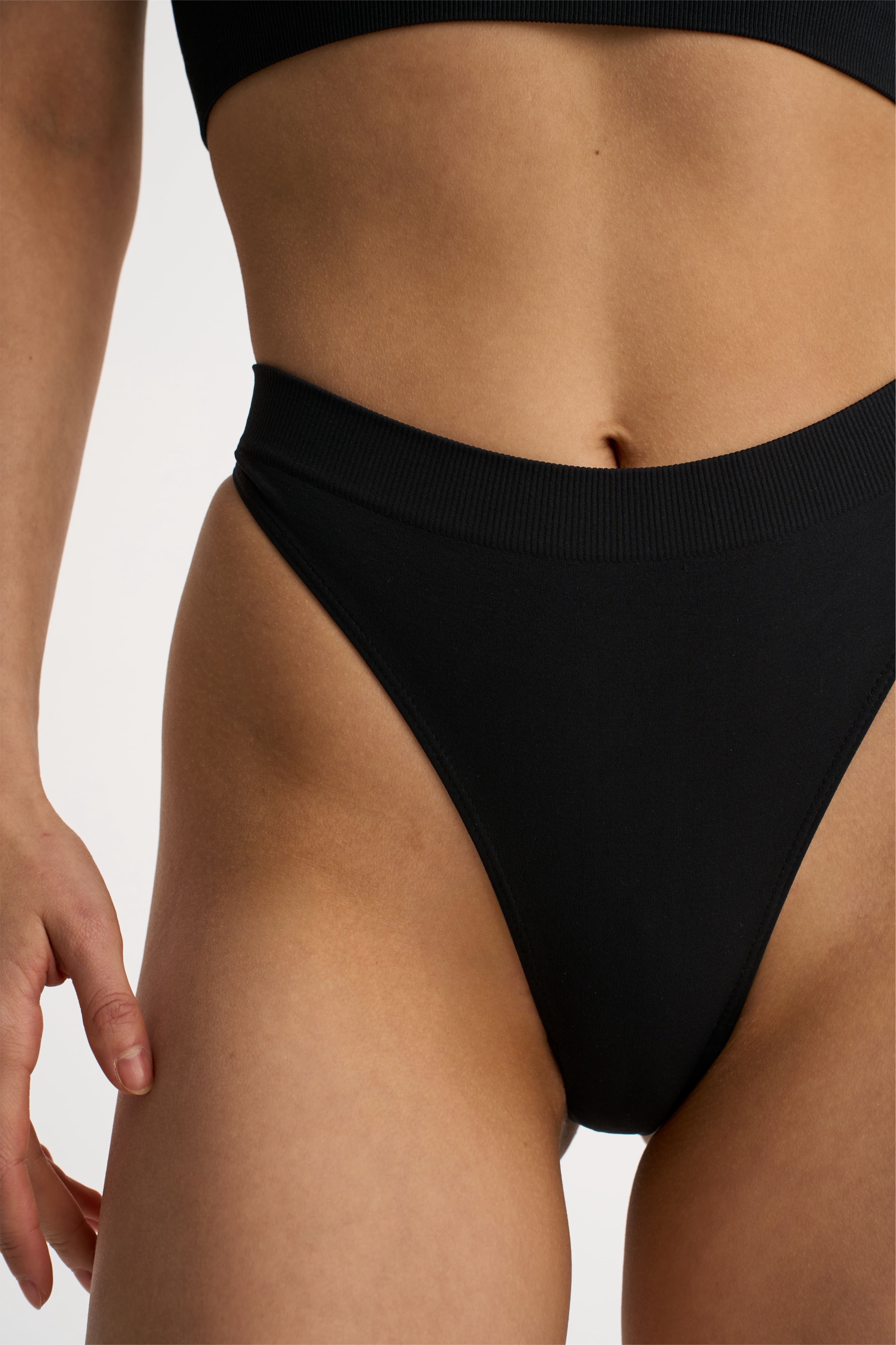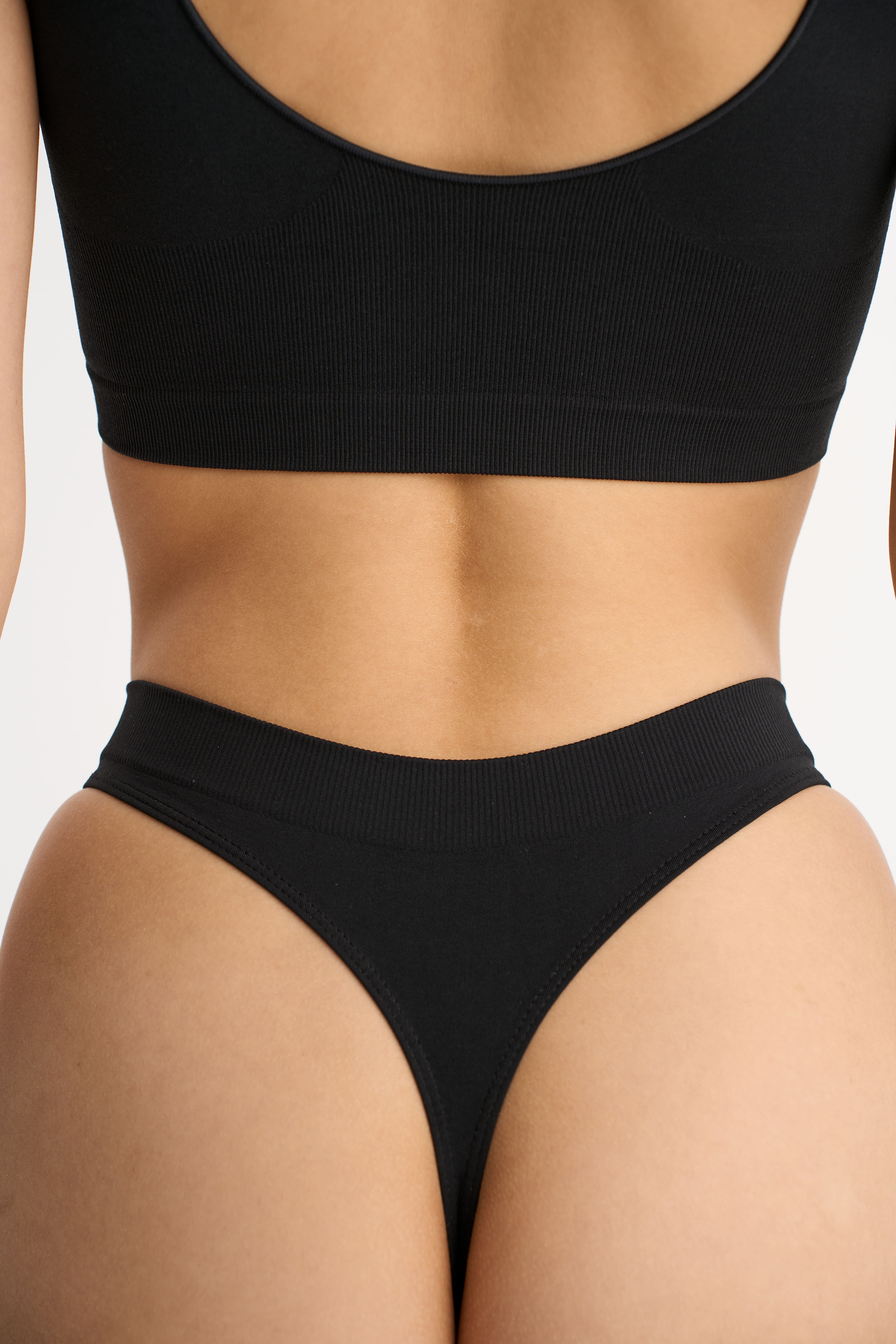 Стринги имеют высокую посадку и мягкую широкую резинку по талии.