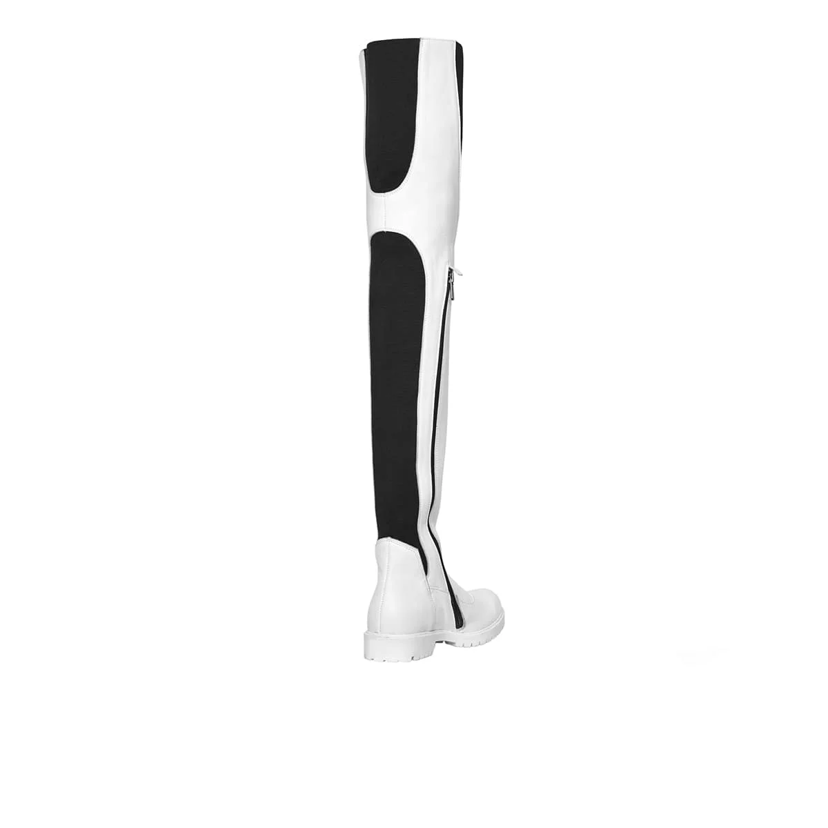 Ботфорты из натуральной кожи с эластичной резинкой в области икр, колена и задней части бедра. Застежка молния, рельефна подошва из износостойкого материала ТЭП.