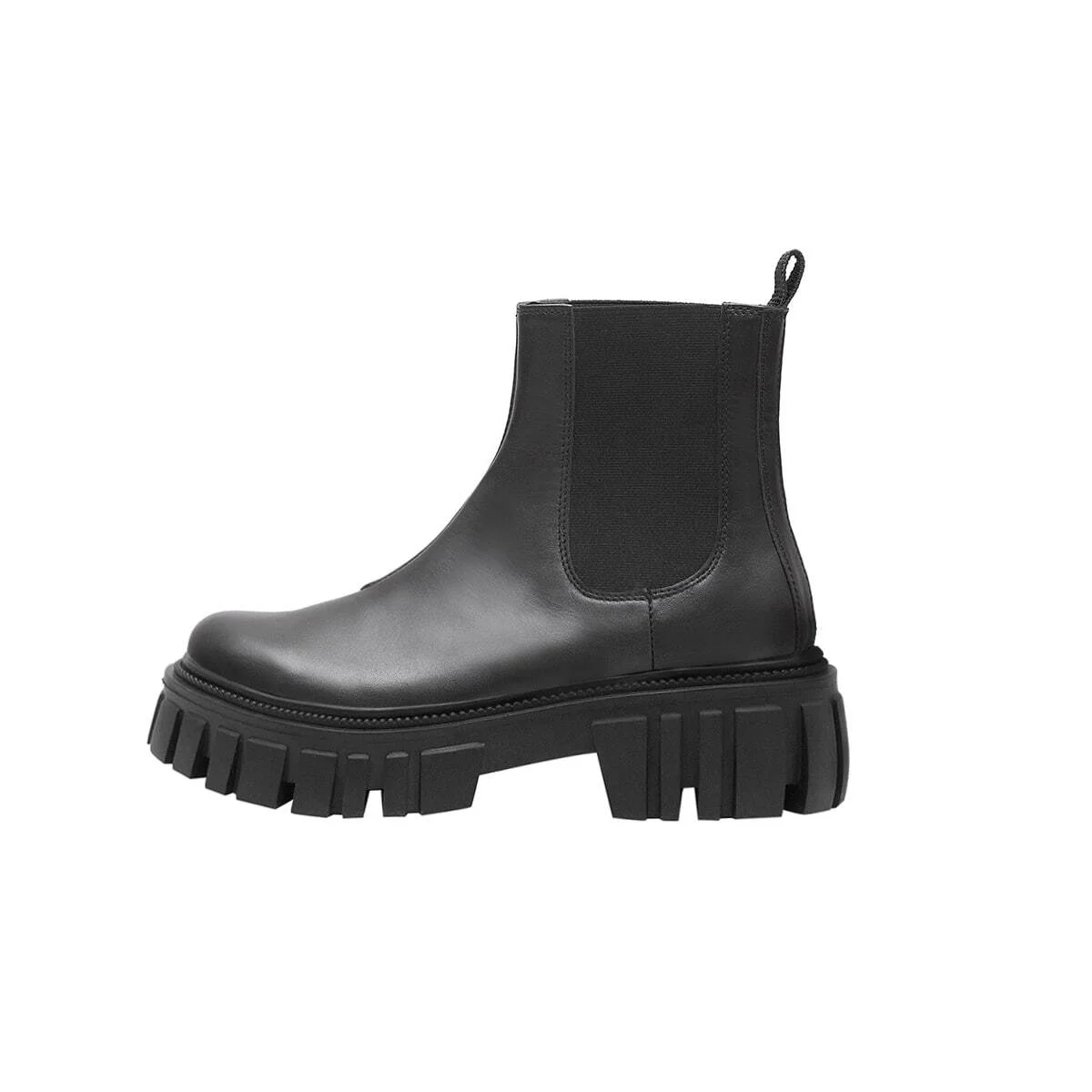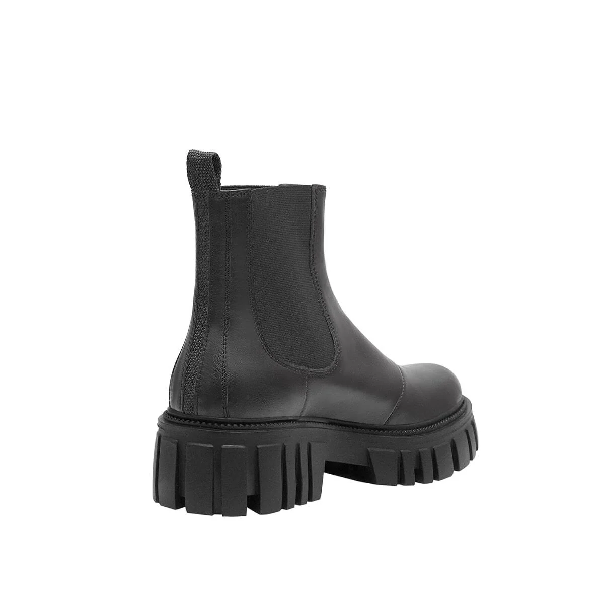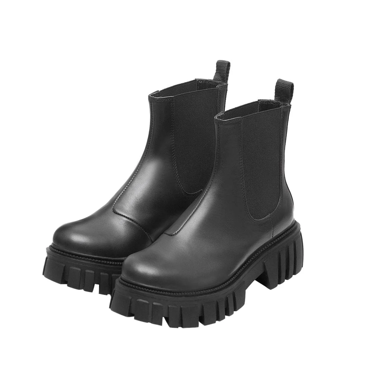 Высокие кожаные ботинки без шнурков с эластичными вставками по бокам и декоративной лентой сзади. Подошва из легкого износостойкого материала PU.