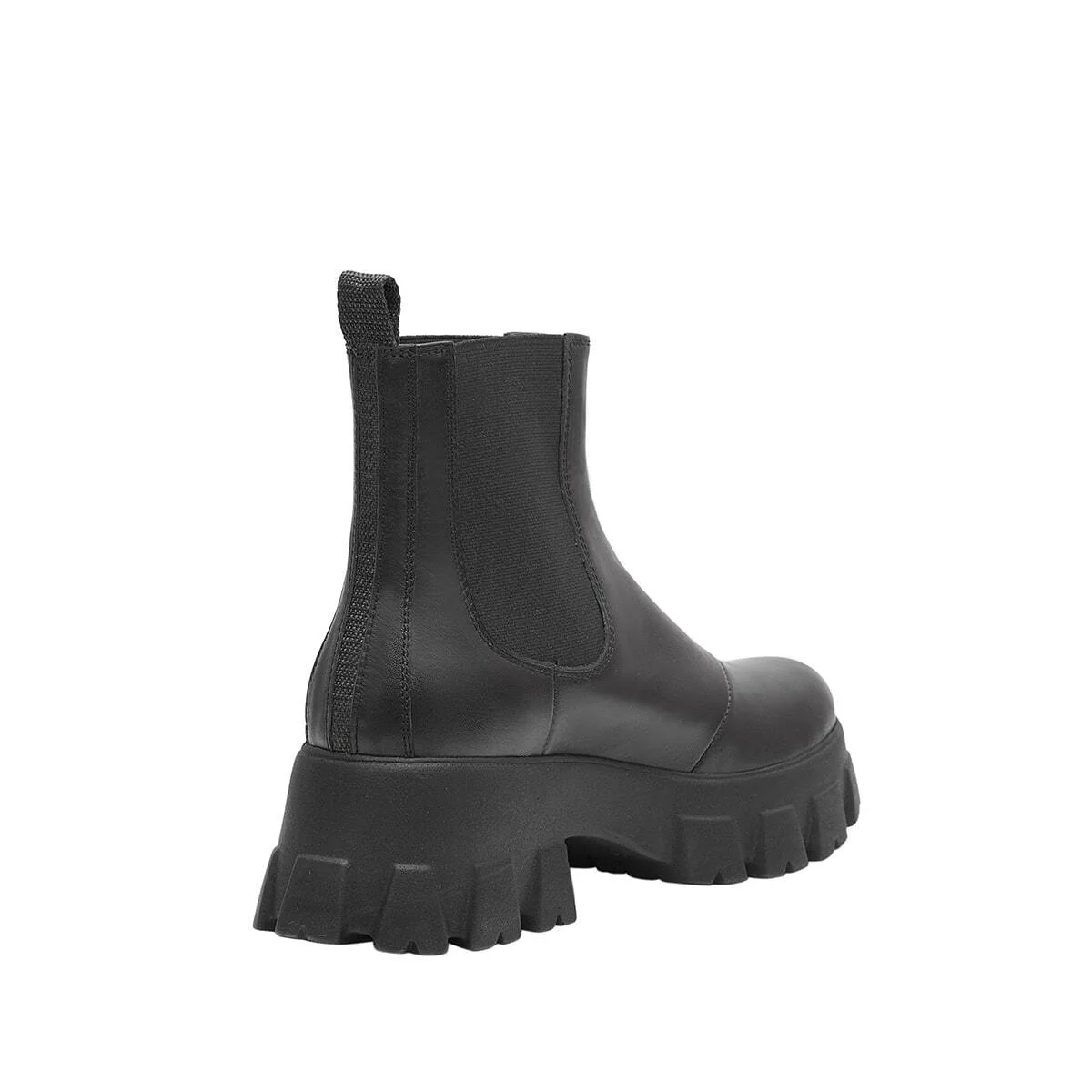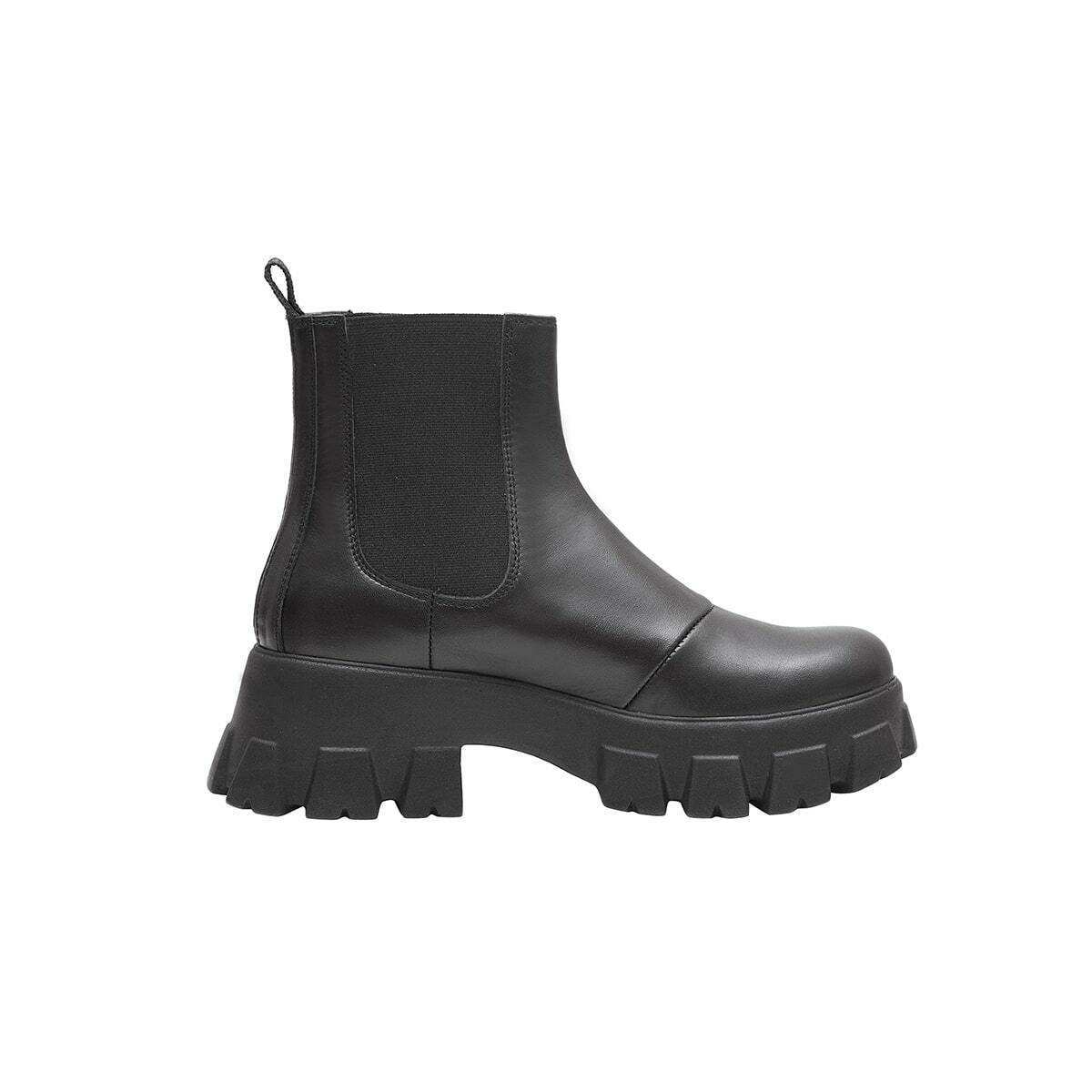 Кожаные ботинки с острым носом. Скошенный каблук, напечатанный с помощью 3-D принтера. Функциональная молния сзади.