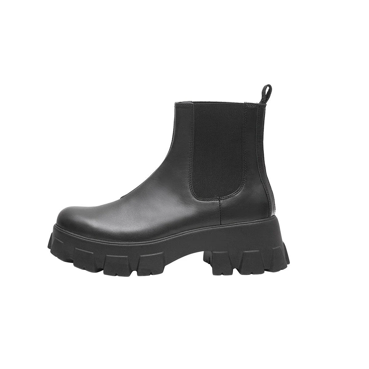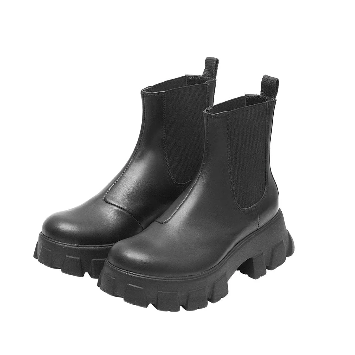 Высокие кожаные ботинки на молнии, с застежкой на липучке. Эластичная резинка сзади. Рельефная подошва из легкого износостойкого материала PU.