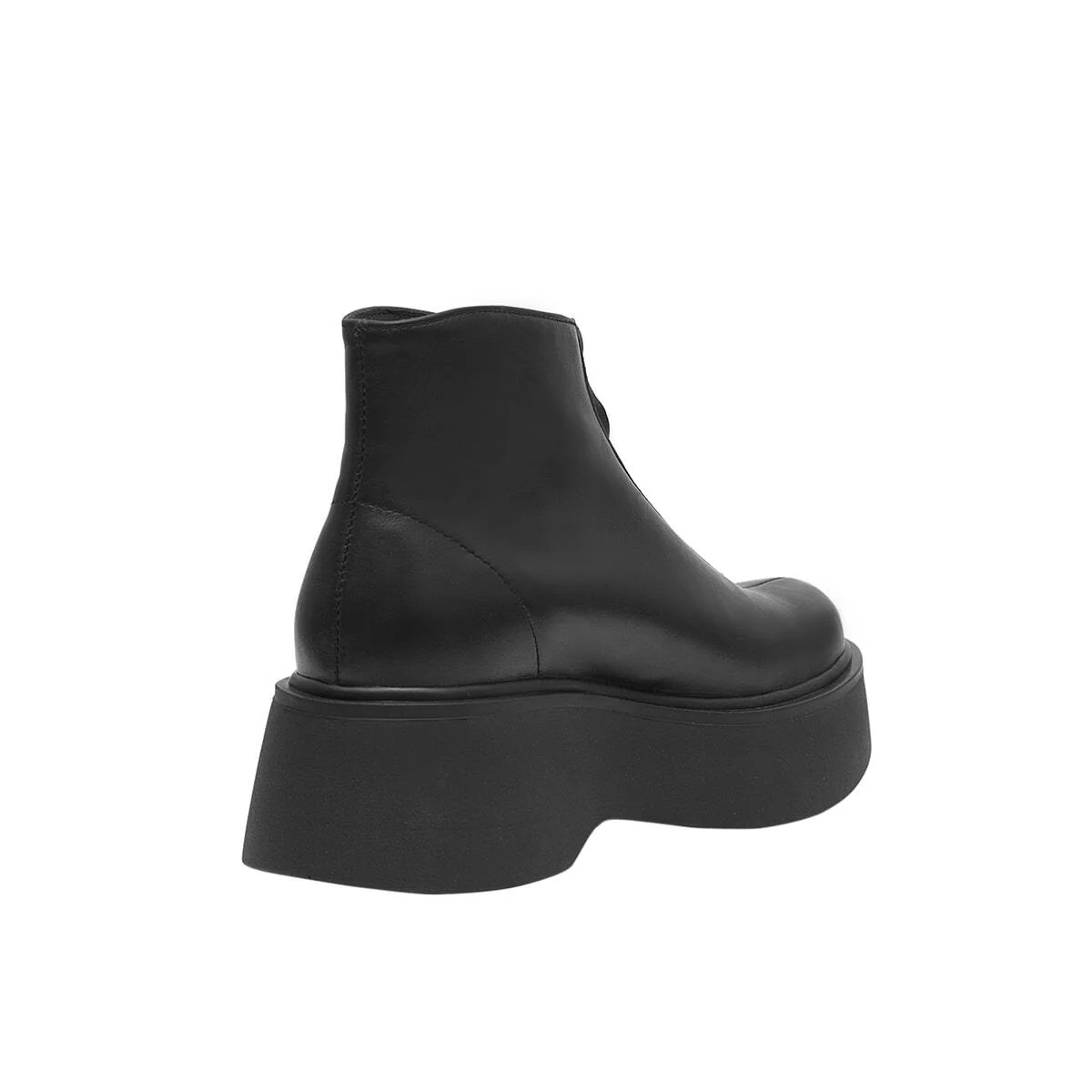 Кожаные ботинки с острым носом. Скошенный каблук, напечатанный с помощью 3-D принтера. Функциональная молния сзади.