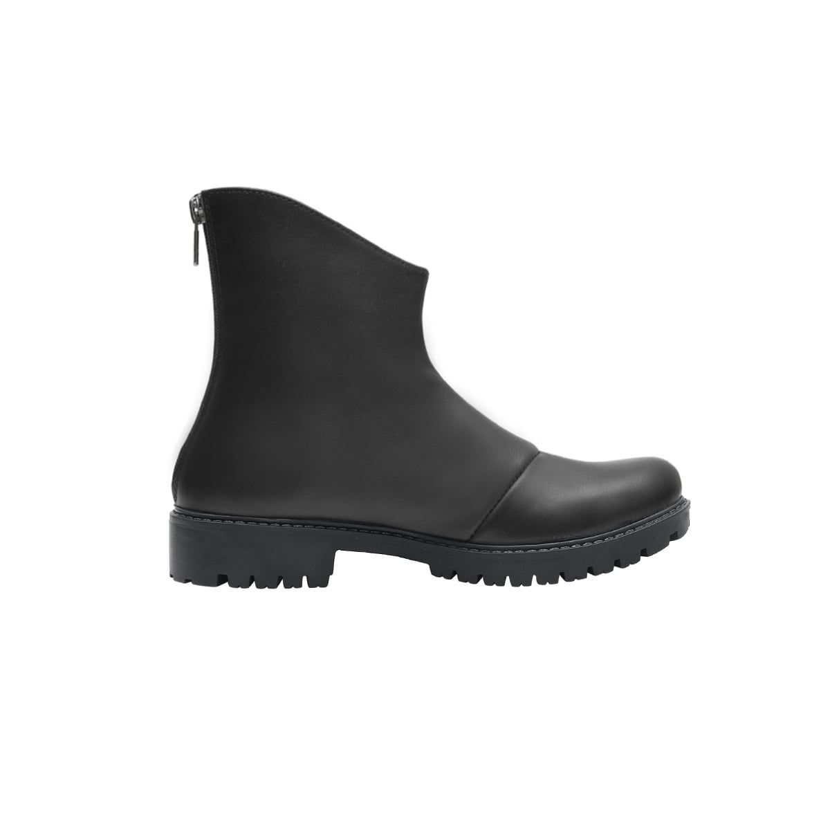 Кожаные ботинки с острым носом. Скошенный каблук, напечатанный с помощью 3-D принтера. Функциональная молния сзади.