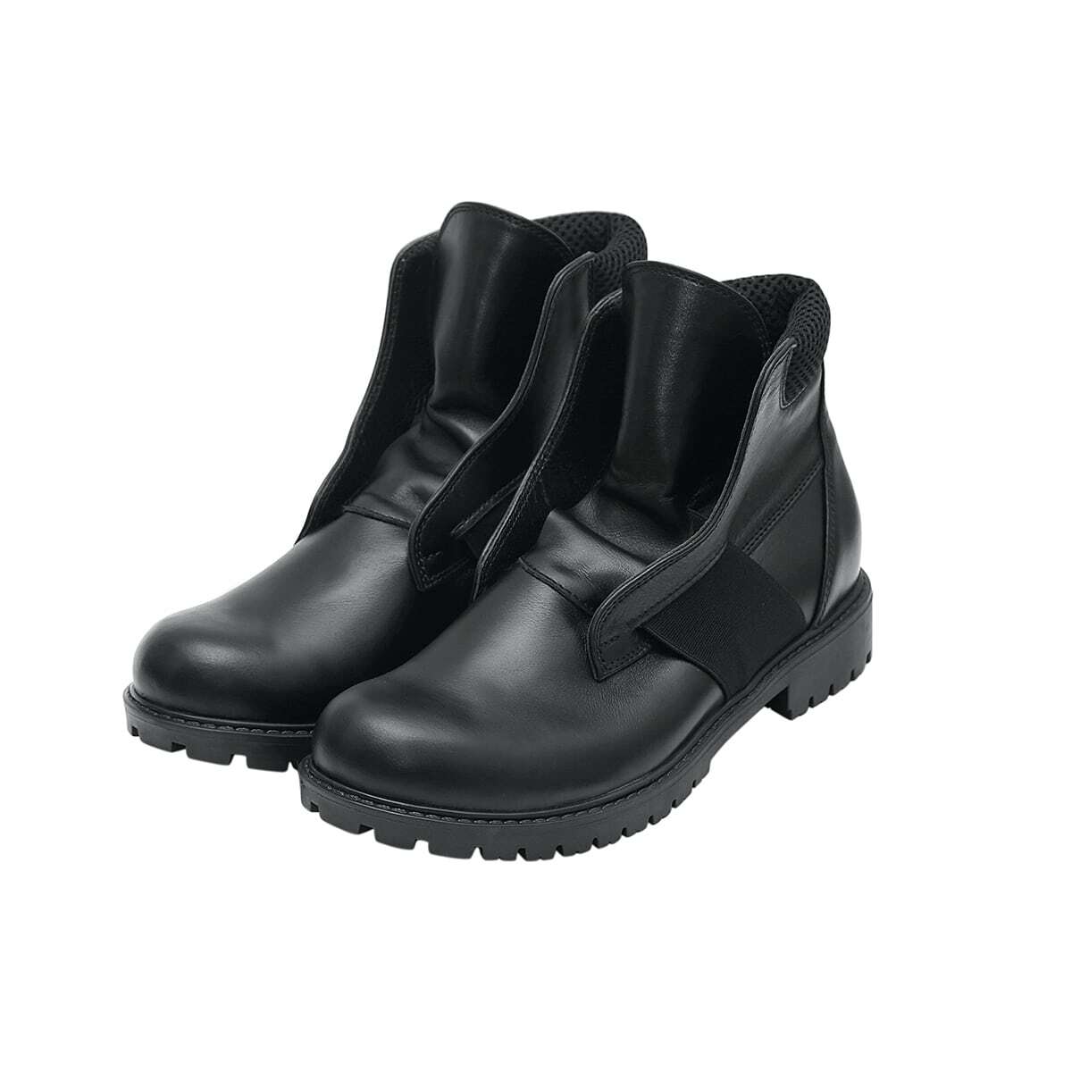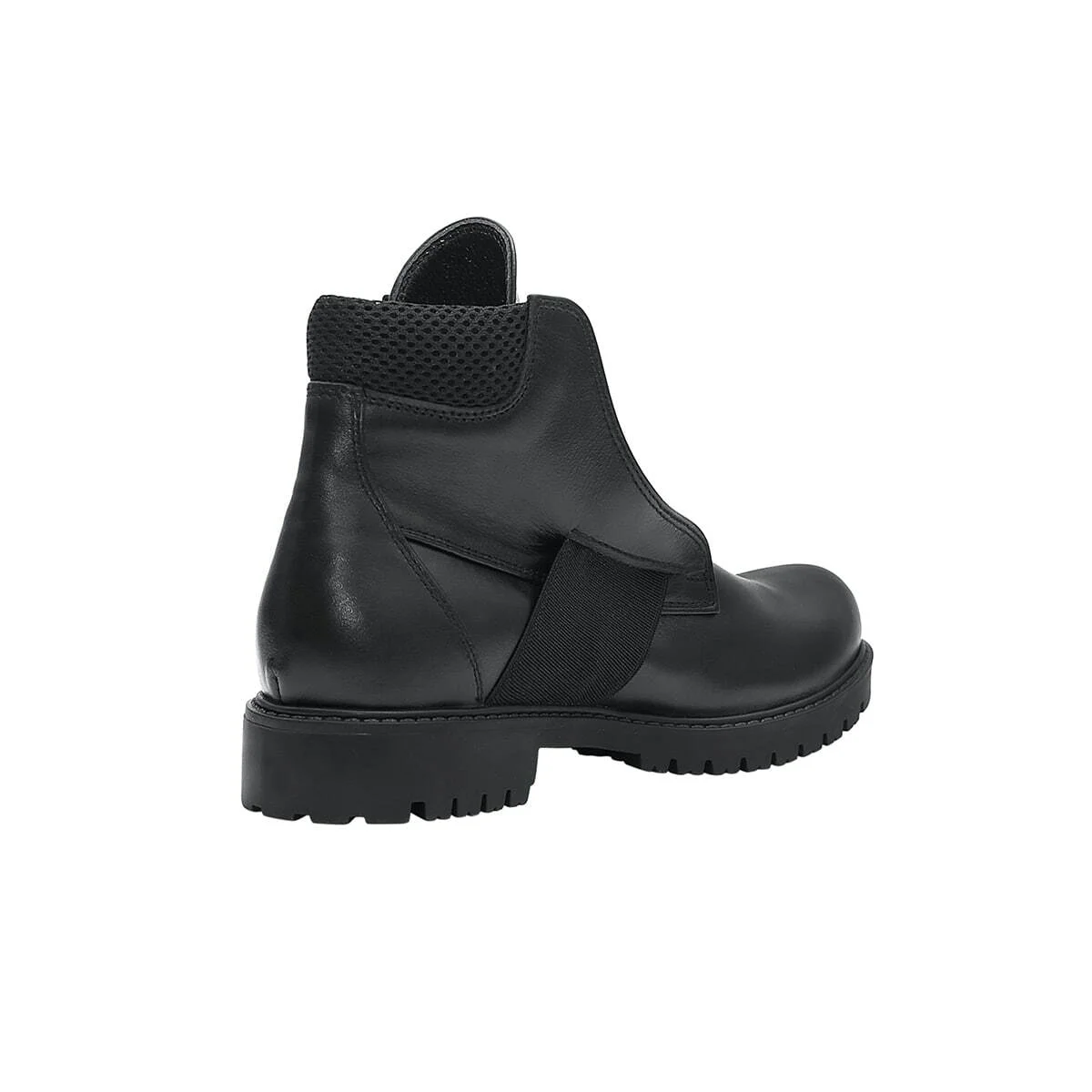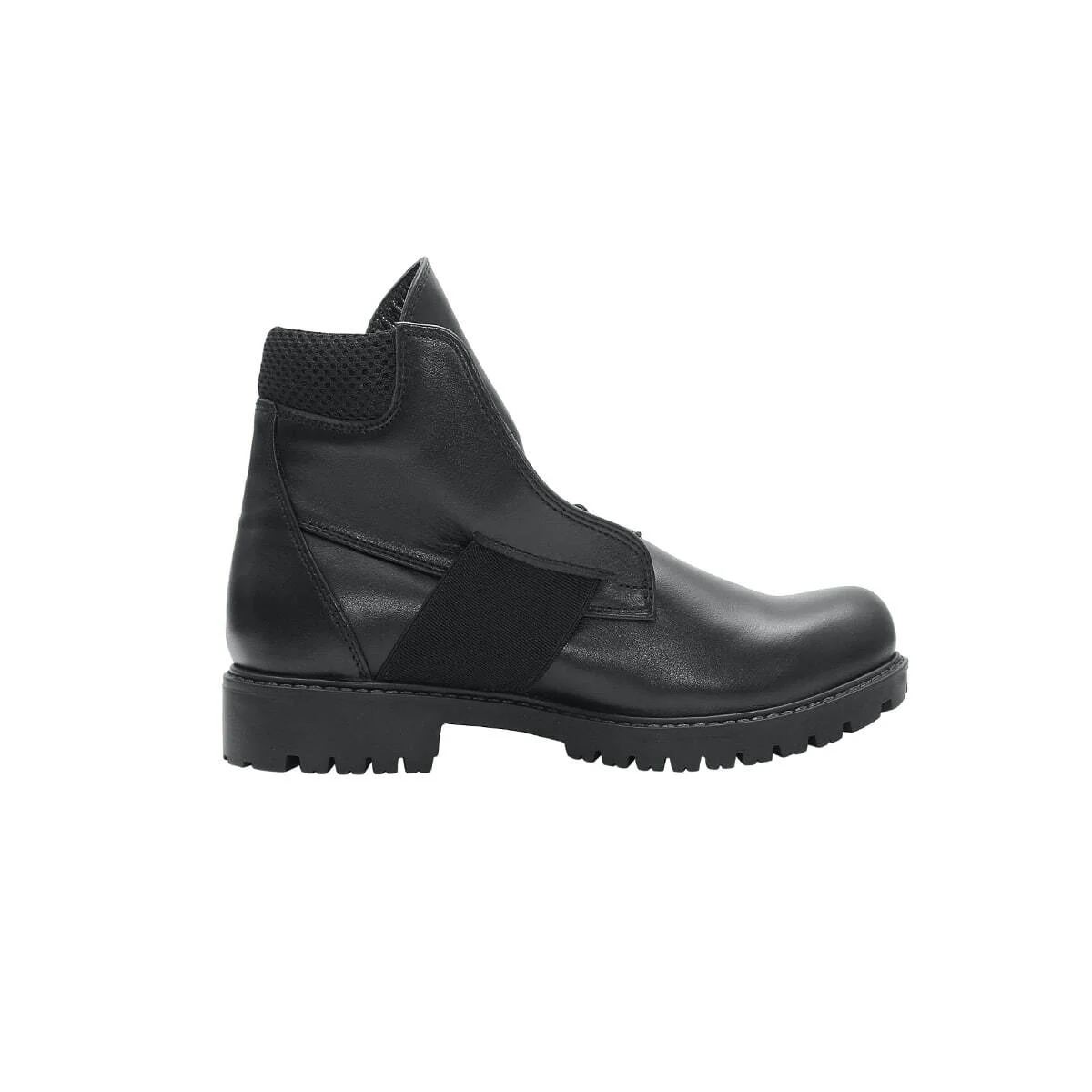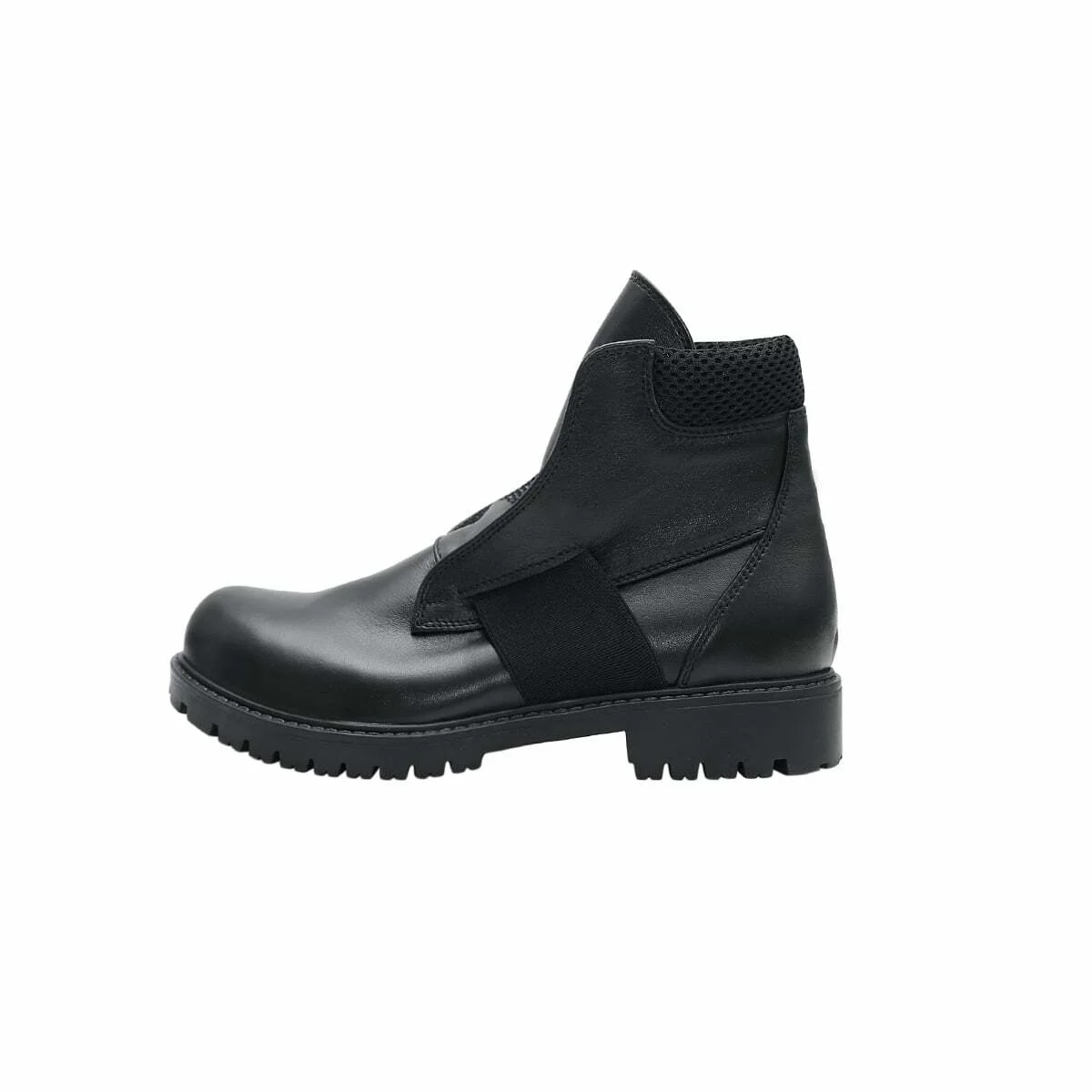 Высокие кожаные ботинки без шнурков. С мягкой деталью на заднике. Эластичный ремешок по центру, под язычком. Рельефная подошва из легкого износостойкого материала ТЭП. Низкий каблук.