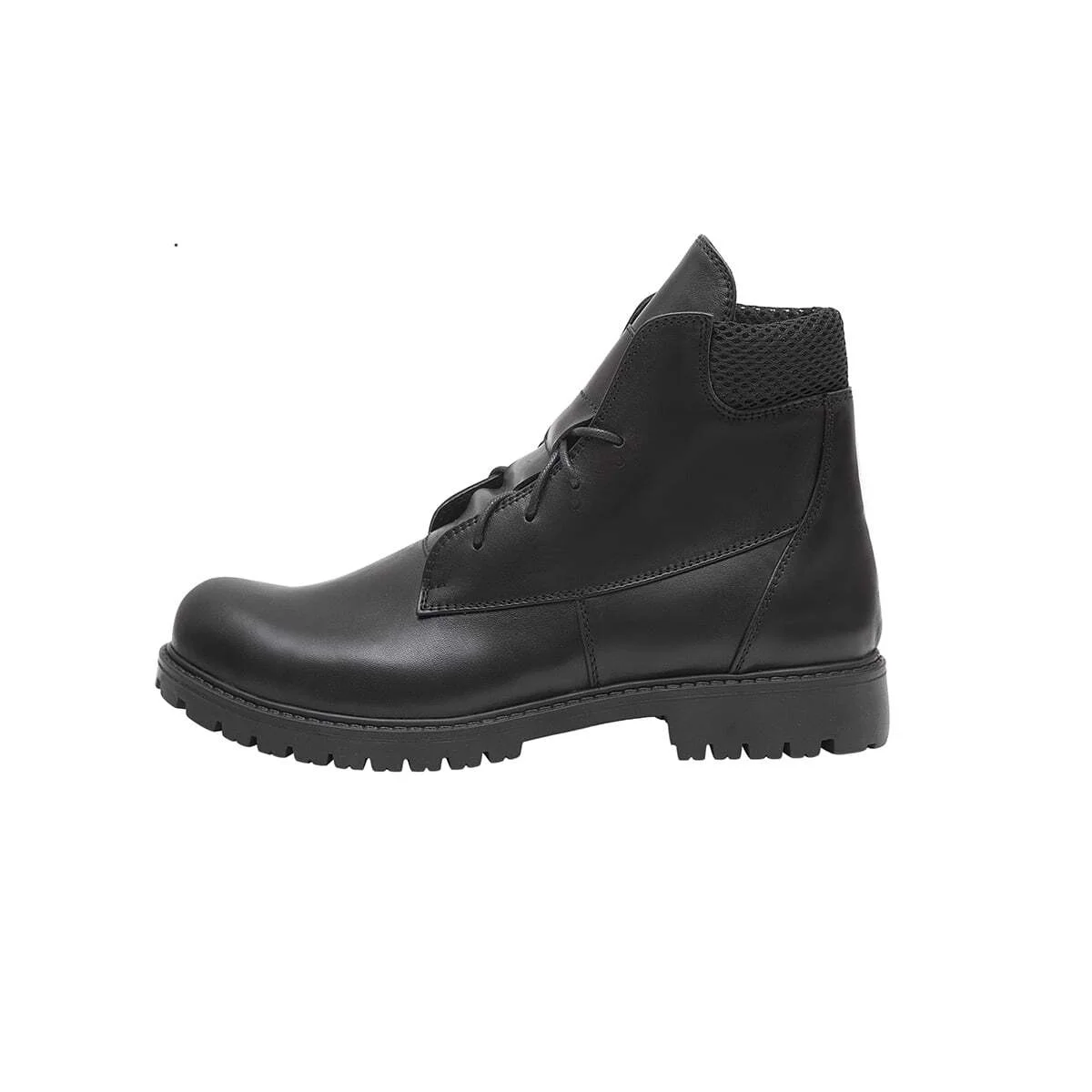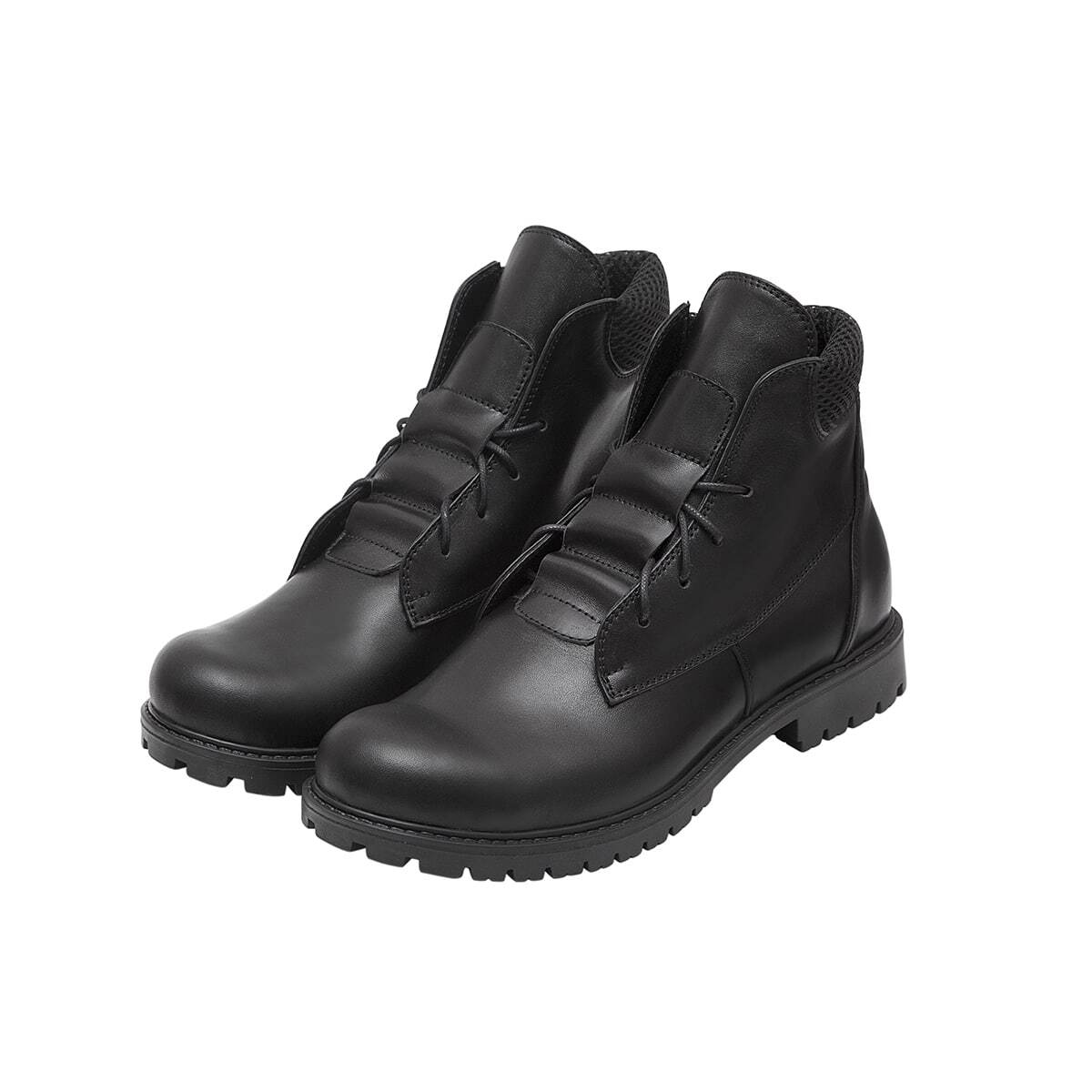 Высокие кожаные ботинки на шнуровке. С мягкой деталью «сетка» на заднике. Кожаный язычок, рельефная подошва из легкого износостойкого материала ТЭП. Низкий каблук.