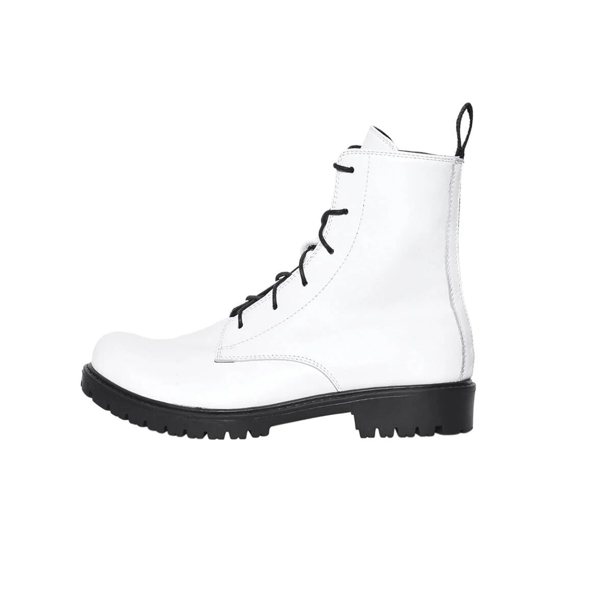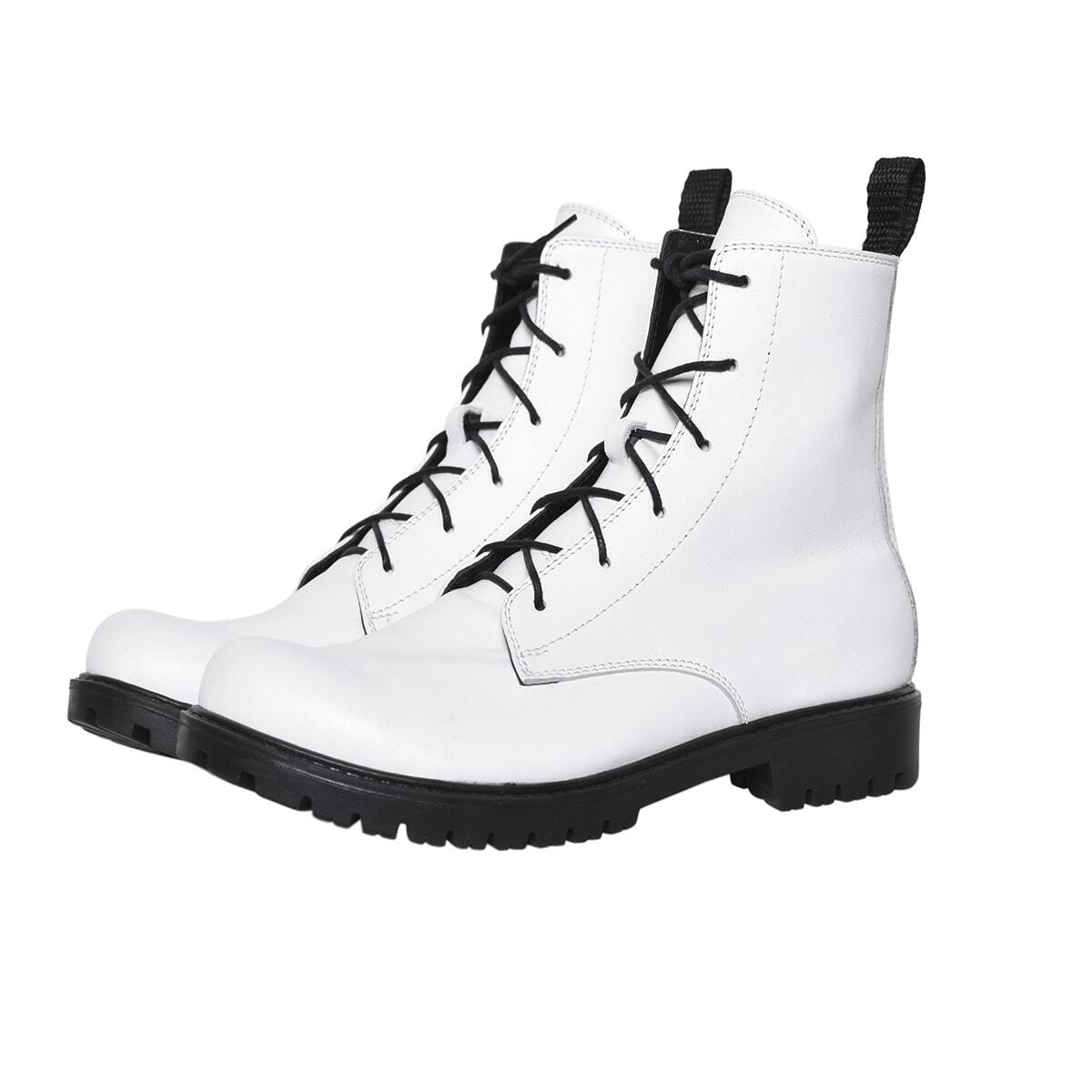Кожаные ботинки на шнуровке. Декоративная лента сзади. Подошва из легкого износостойкого материала PU.