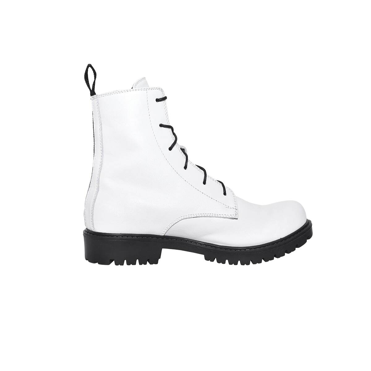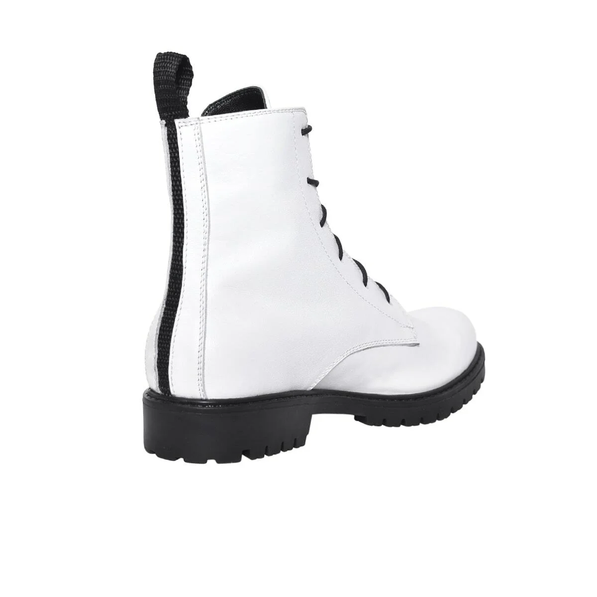 Кожаные ботинки на шнуровке. Декоративная лента сзади. Рельефная подошва из легкого износостойкого материала ТЭП. Низкий каблук.