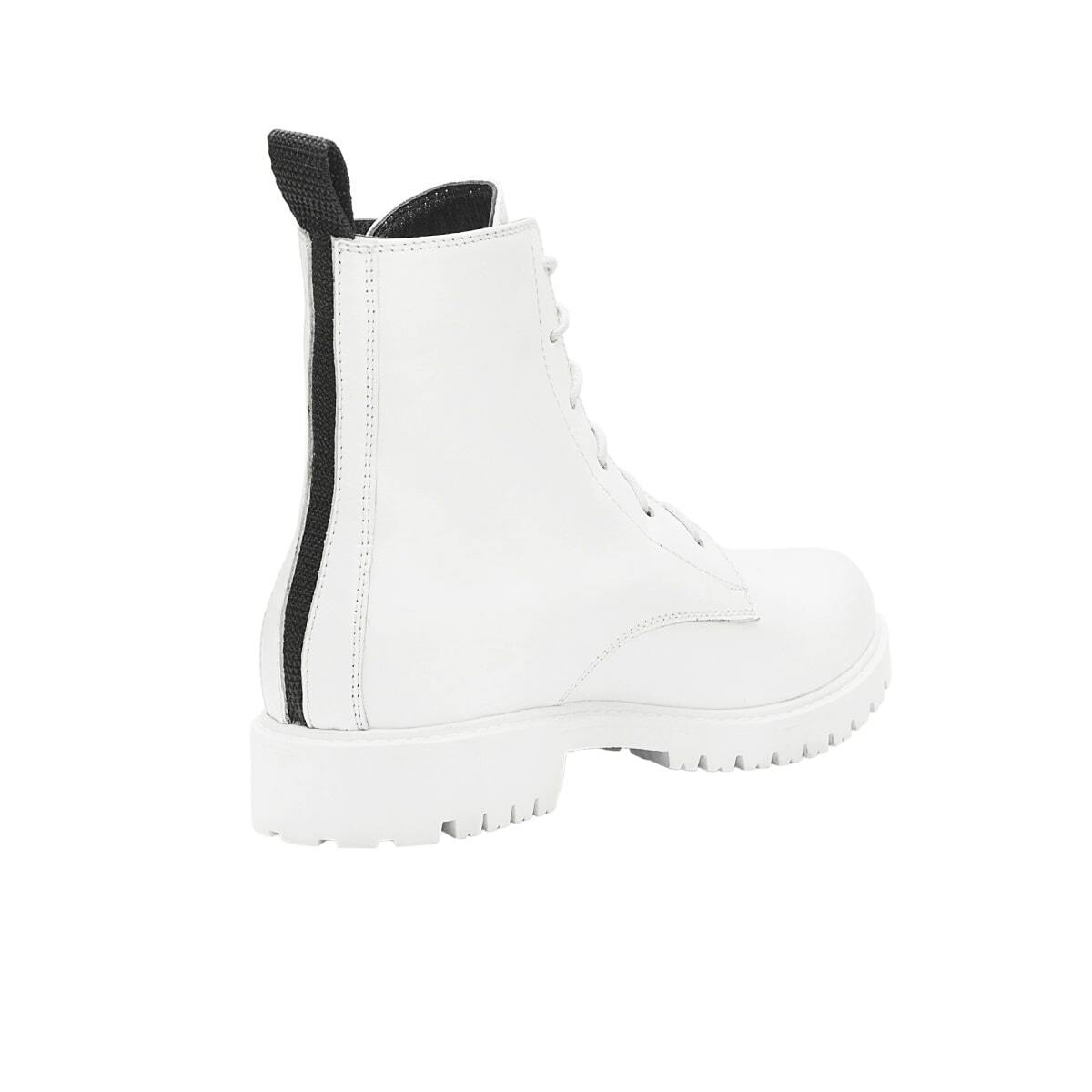 Кожаные ботинки на шнуровке. Декоративная лента сзади. Рельефная подошва из легкого износостойкого материала ТЭП. Низкий каблук.