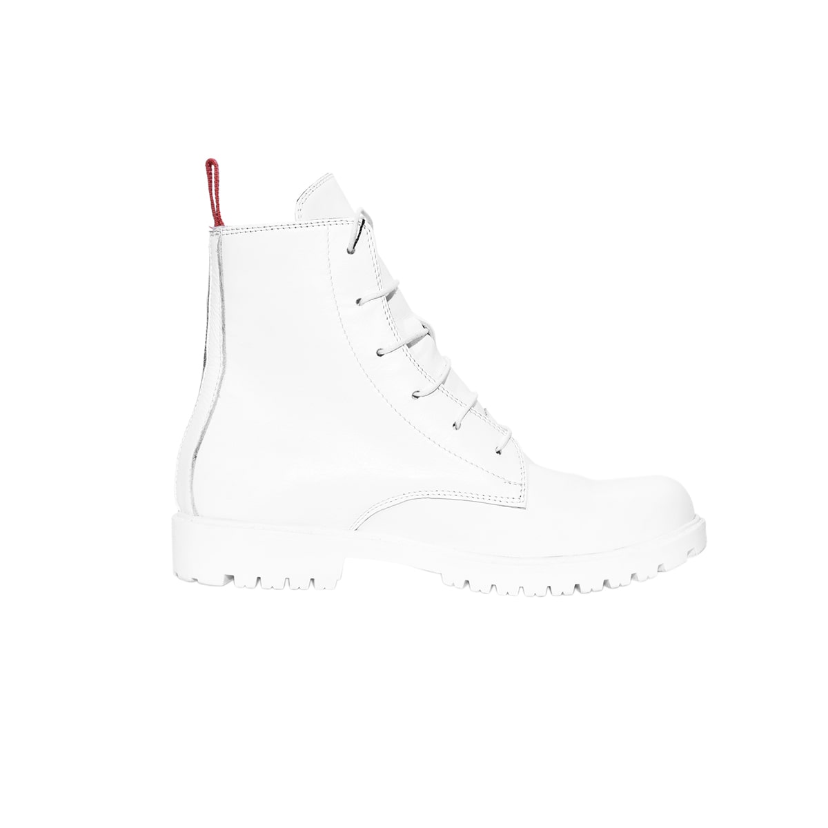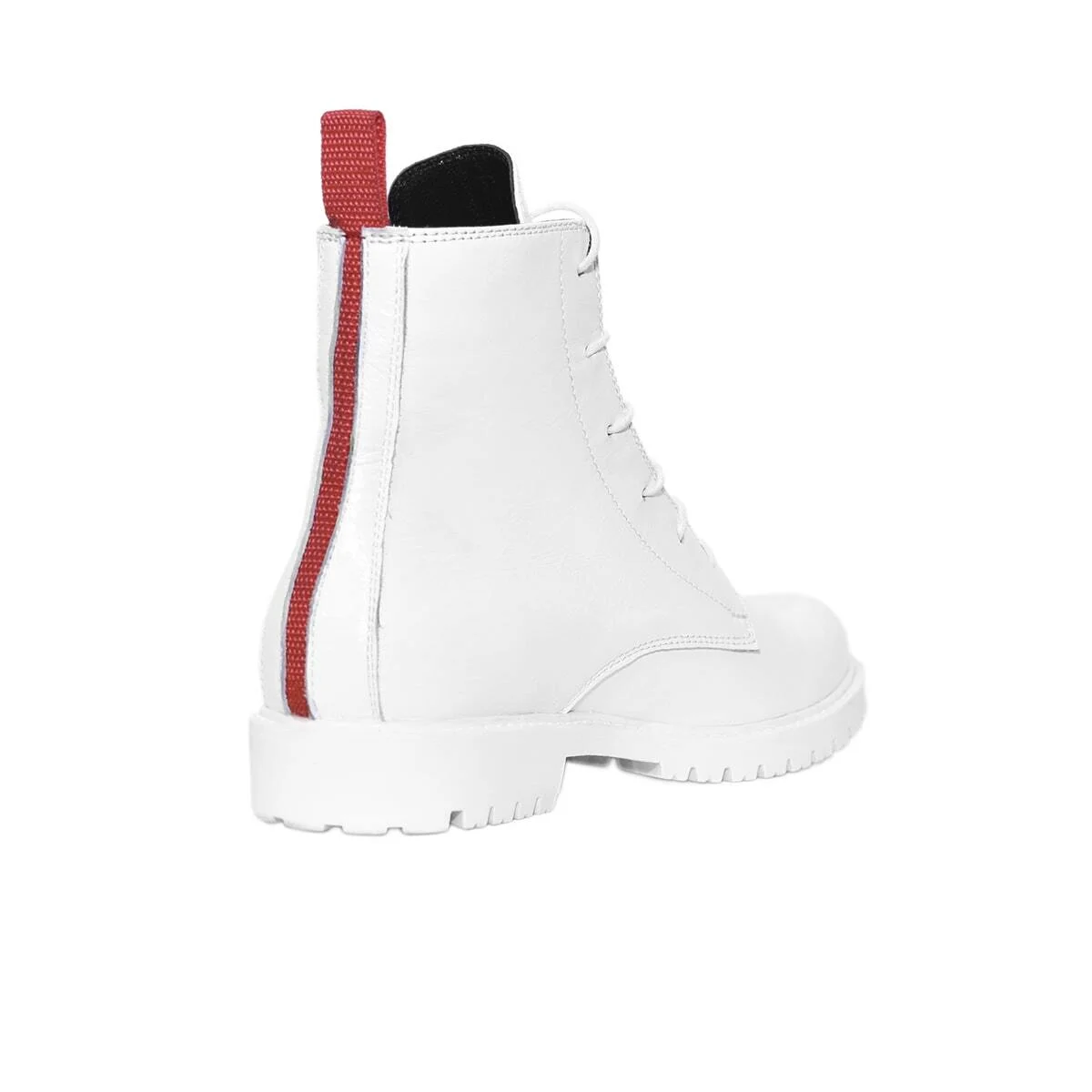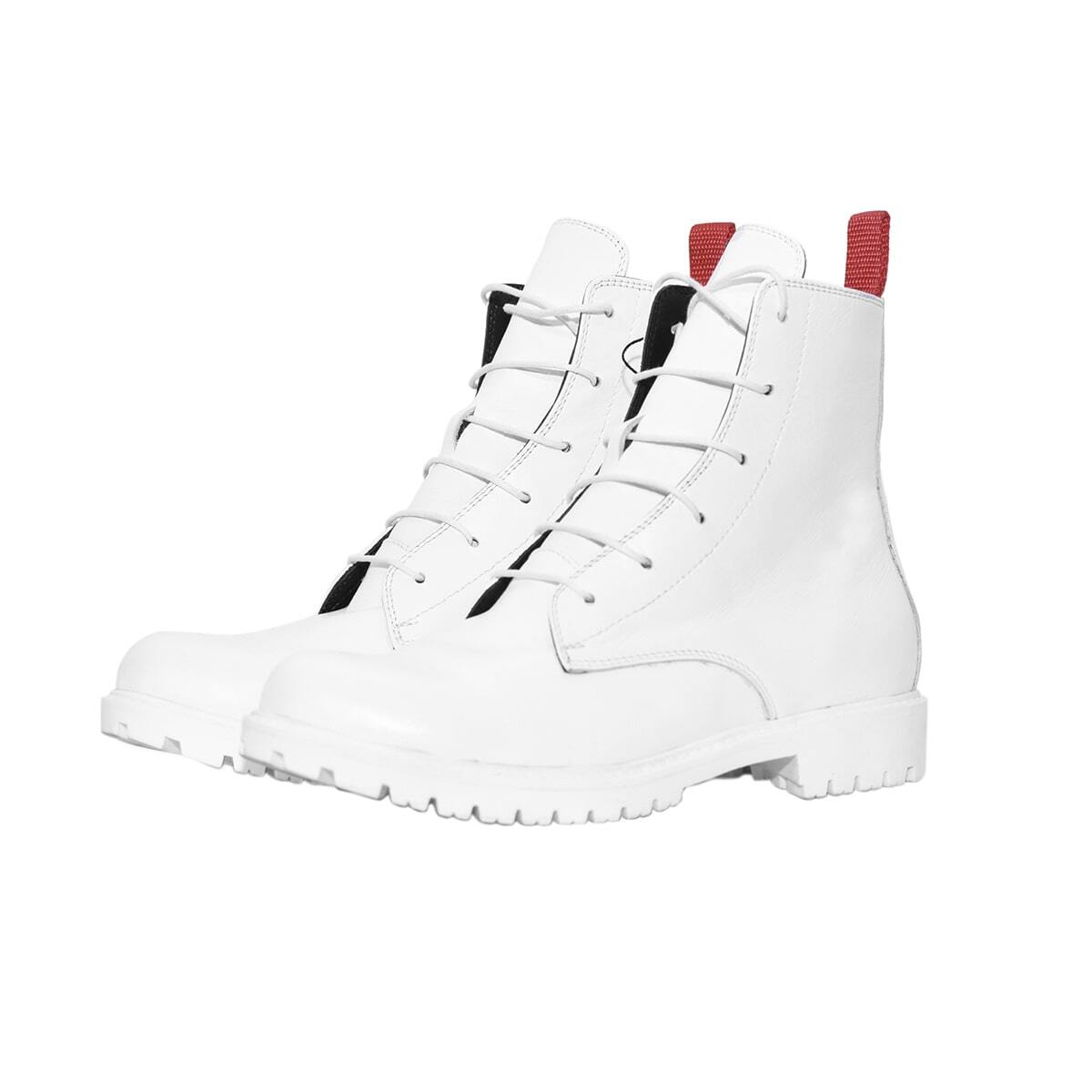 Кожаные ботинки на шнуровке. Декоративная лента сзади. Подошва из легкого износостойкого материала PU.