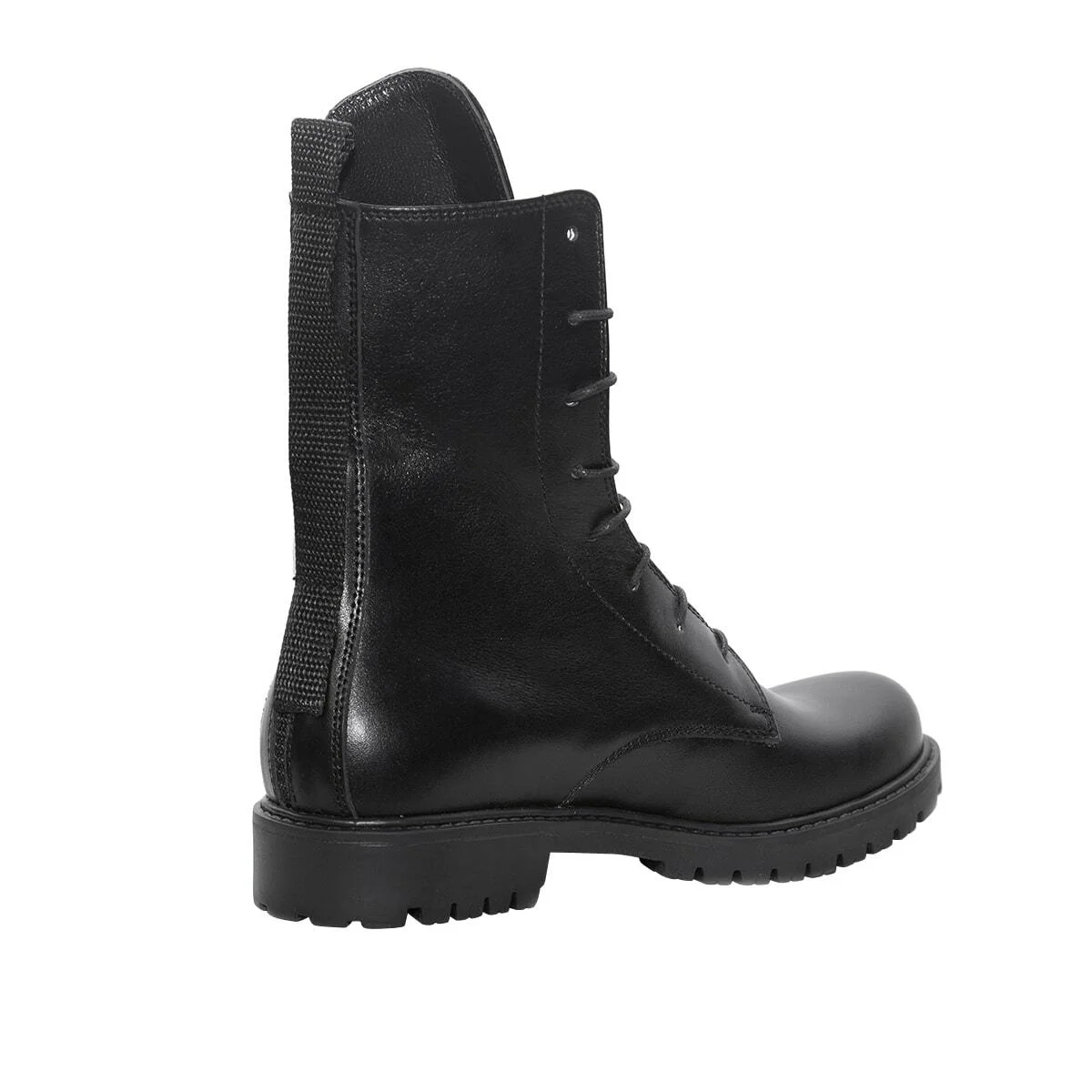 Высокие кожаные ботинки на молнии, с застежкой на липучке. Эластичная резинка сзади. Рельефная подошва из легкого износостойкого материала PU.