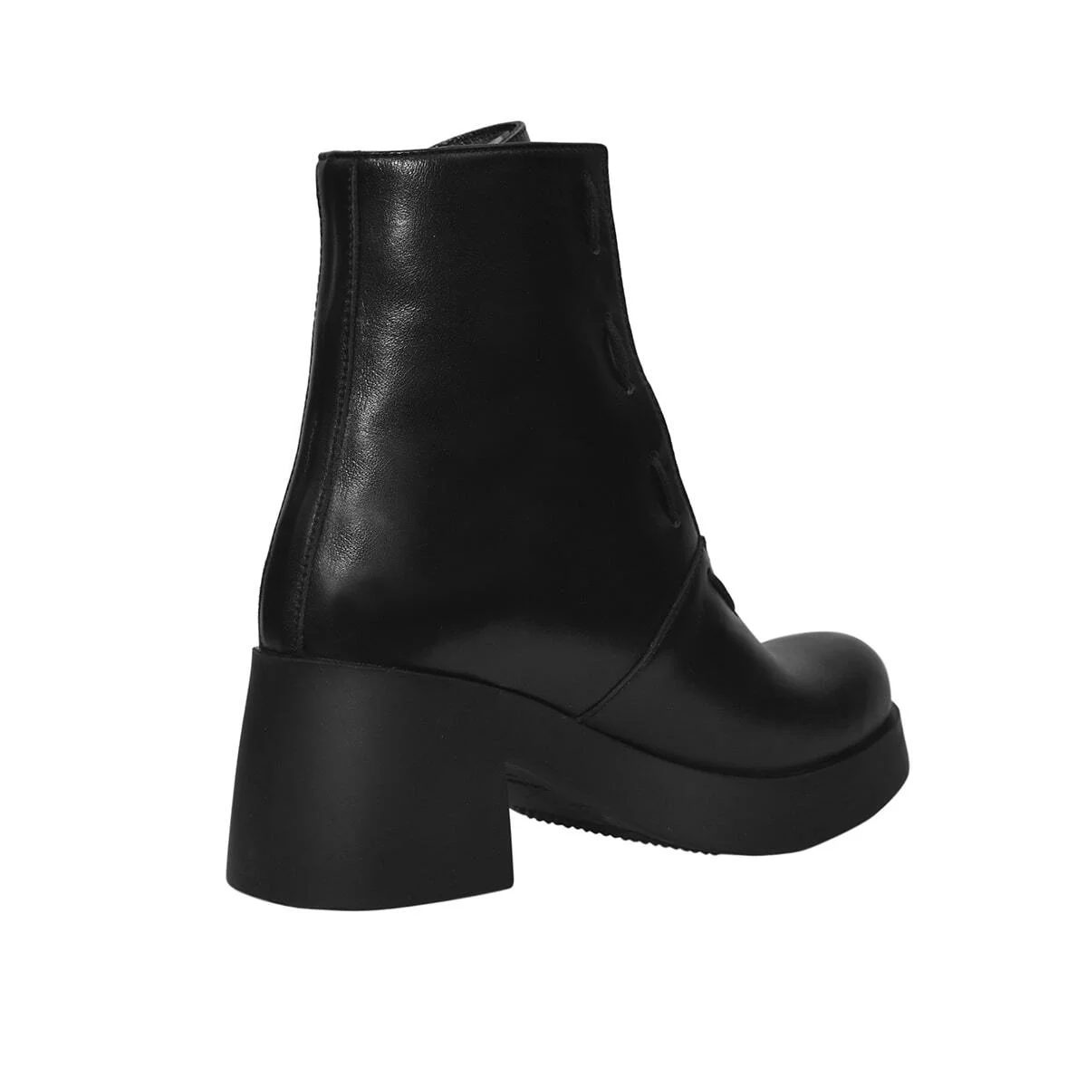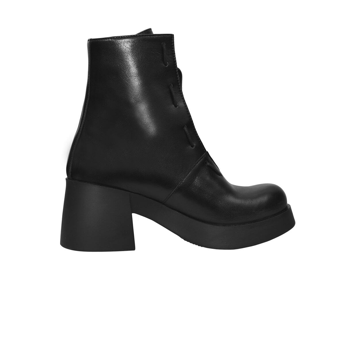 Кожаные ботинки с острым носом. Скошенный каблук, напечатанный с помощью 3-D принтера. Функциональная молния сзади.