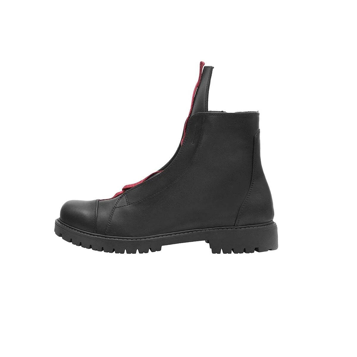 Высокие кожаные ботинки на молнии, с застежкой на липучке. Эластичная резинка сзади. Рельефная подошва из легкого износостойкого материала PU.