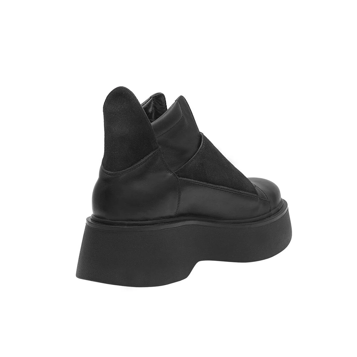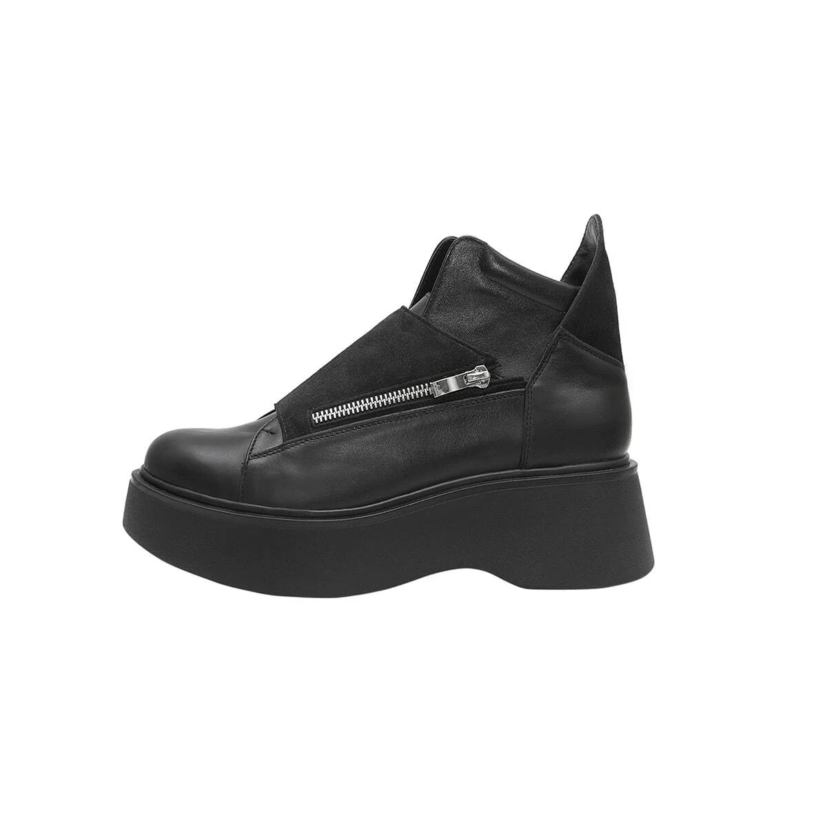 Кожаные ботинки на шнуровке. Высокий замшевый задник. Декорированы замшевой деталью поверх шнуровки на функциональной молнии. Высокая платформа PU.