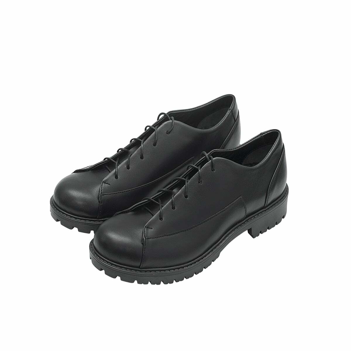 Кожаные ботинки на шнуровке. Декоративная лента сзади. Подошва из легкого износостойкого материала PU.