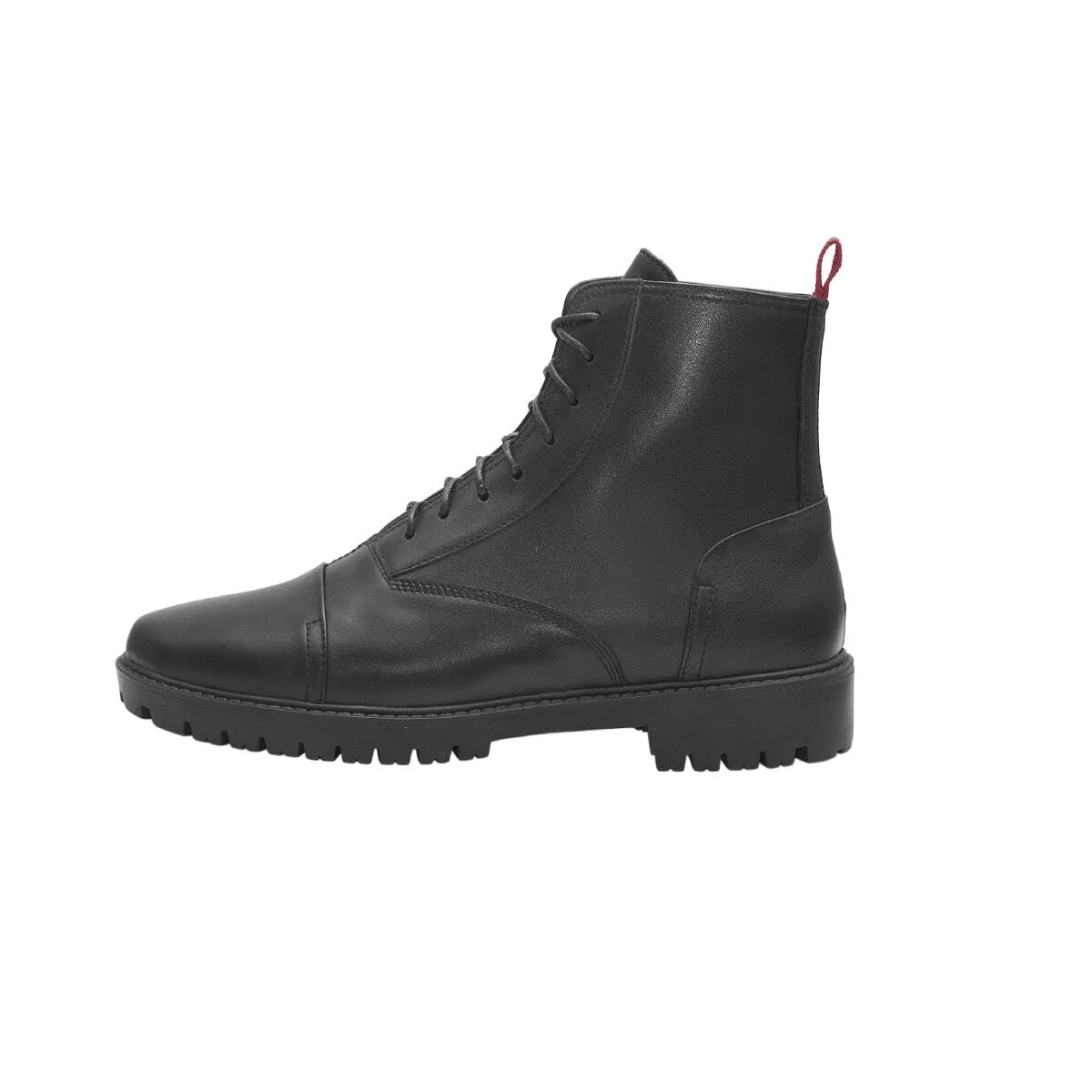 Кожаные ботинки на шнуровке. Декоративная лента сзади. Рельефная подошва ТЭП.