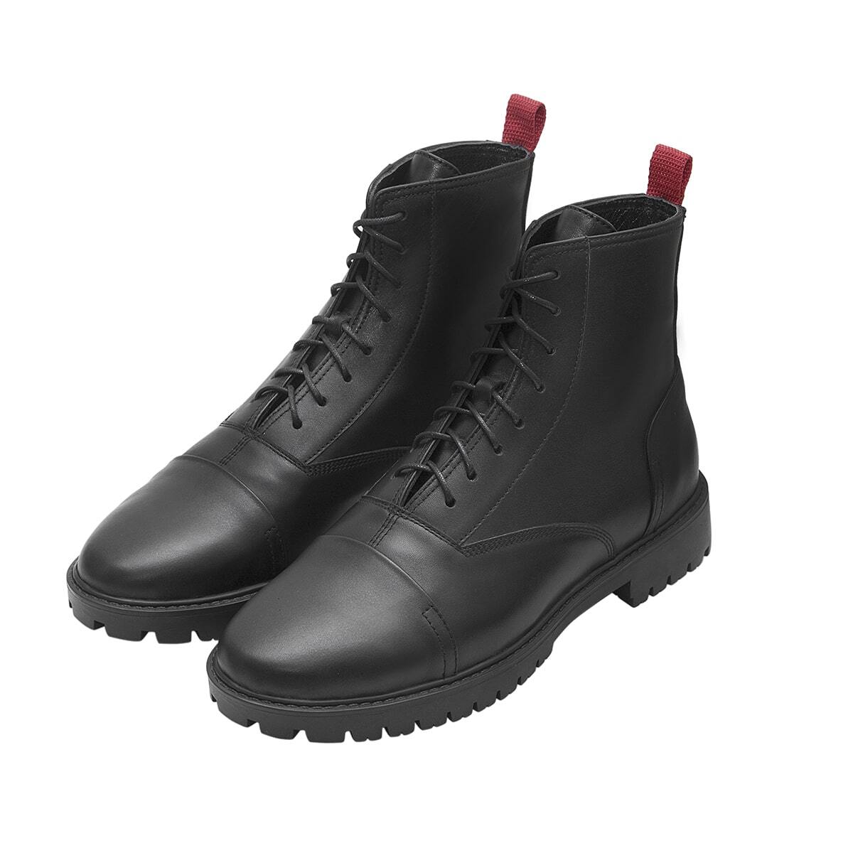 Кожаные ботинки на шнуровке. Декоративная лента сзади. Подошва из легкого износостойкого материала PU.