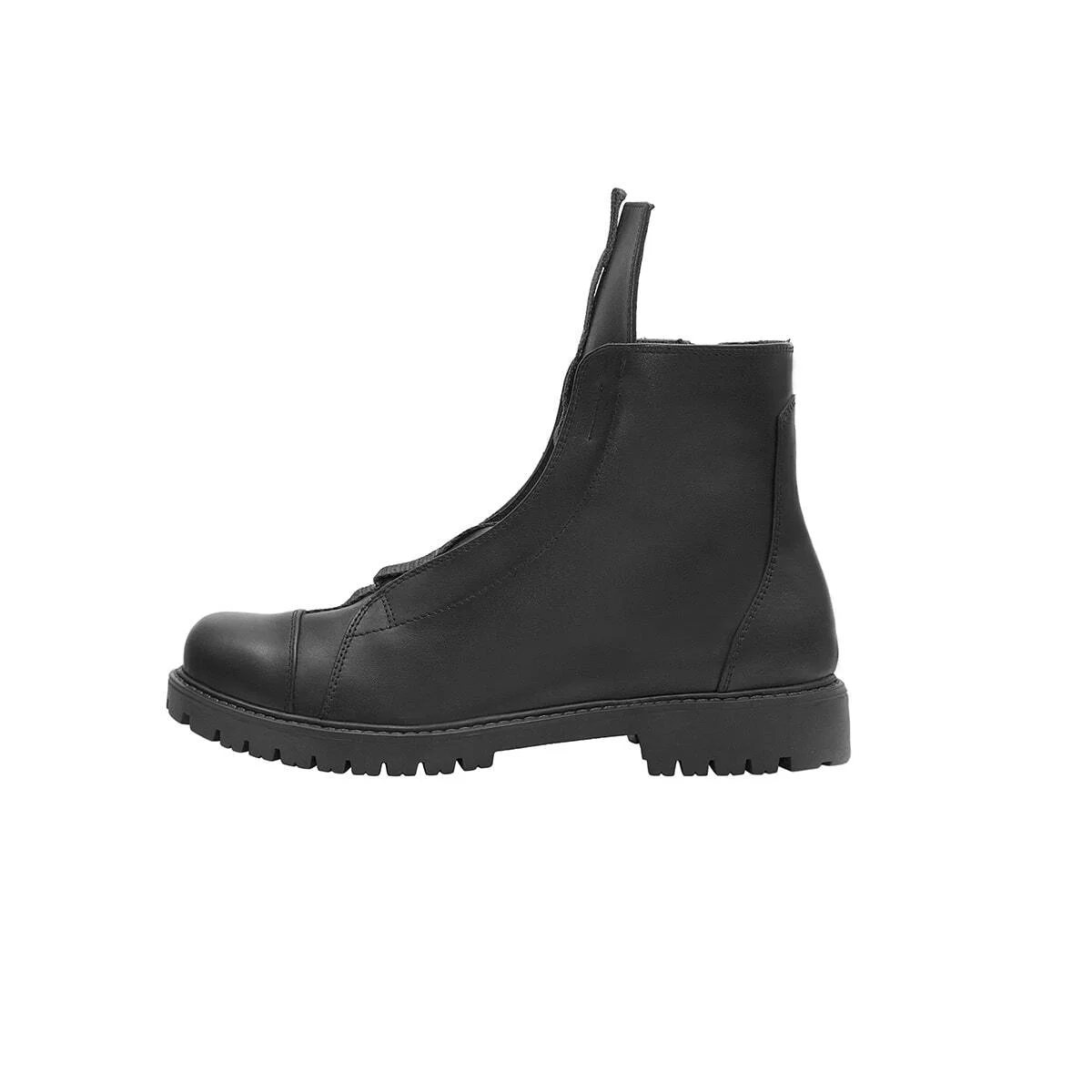 Низкие кожаные ботинки с высоким языком и декоративной лентой на языке, боковая молния. Рельефная подошва ТЭП.
