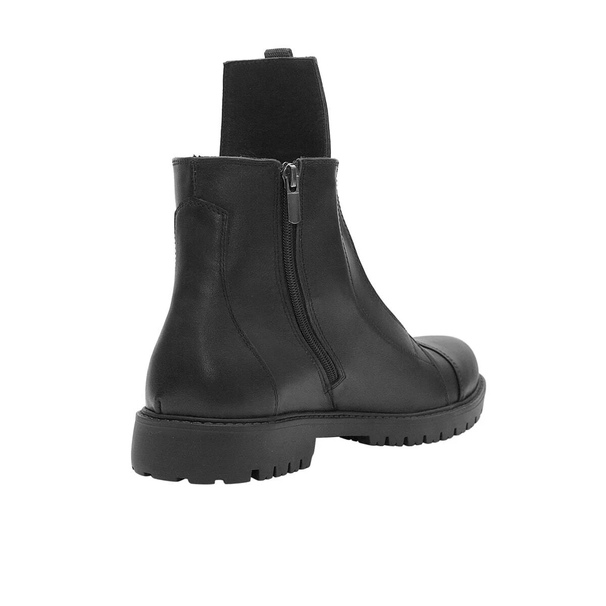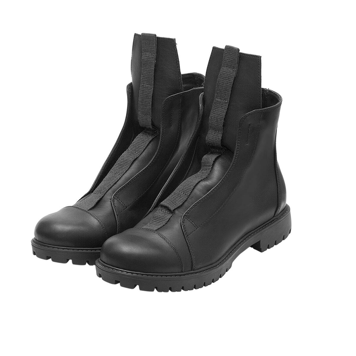 Высокие кожаные ботинки на молнии, с застежкой на липучке. Эластичная резинка сзади. Рельефная подошва из легкого износостойкого материала PU.
