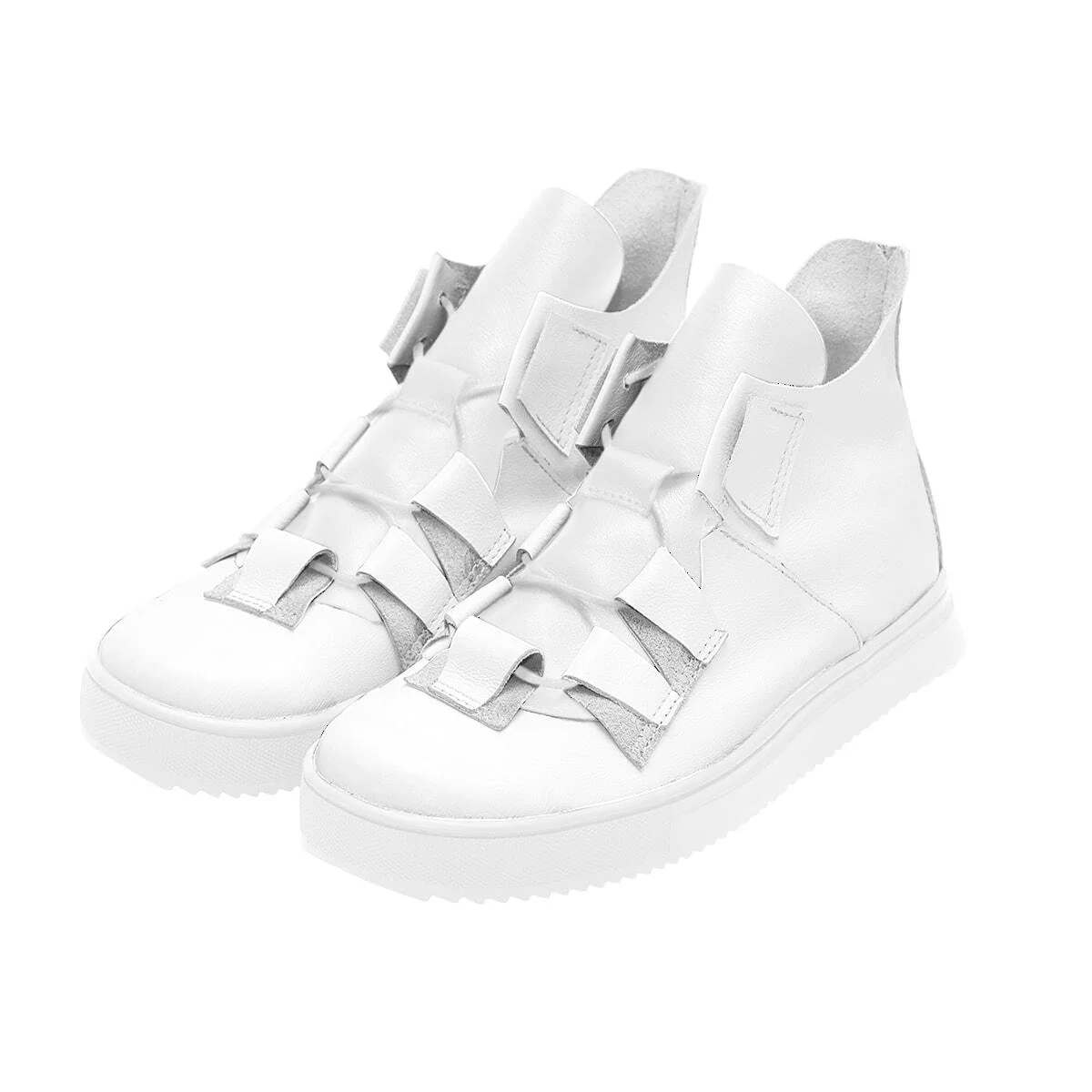 Высокие кожаные кеды без шнурков. Жатая кожа. Широкое голенище. Декоративная перфорация под шнурки. Подошва из легкой износостойкой резины ТЭП.