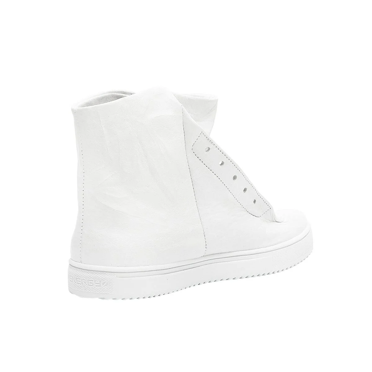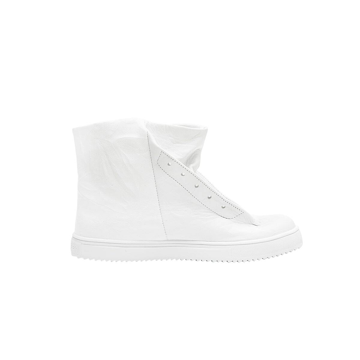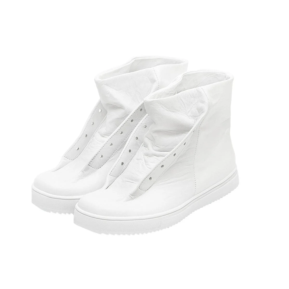 Высокие кожаные кеды без шнурков. Жатая кожа. Широкое голенище. Декоративная перфорация под шнурки. Подошва из легкой износостойкой резины ТЭП.