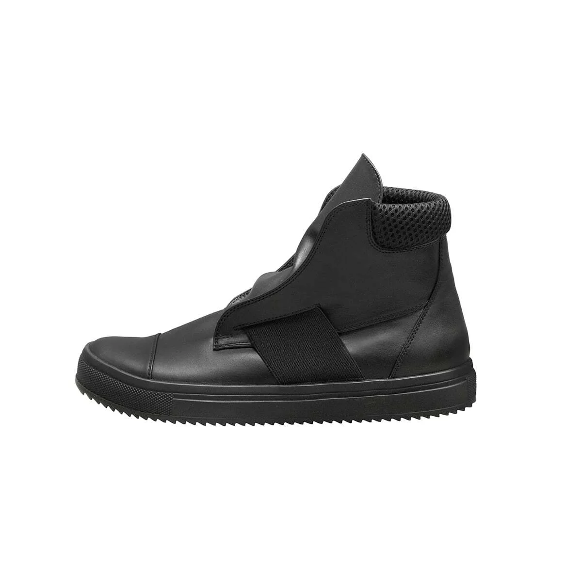 Высокие кожаные кеды без шнурков. С мягкой деталью на заднике. Эластичный ремешок по центру, под язычком. Подошва из легкой износостойкой резины ТЭП