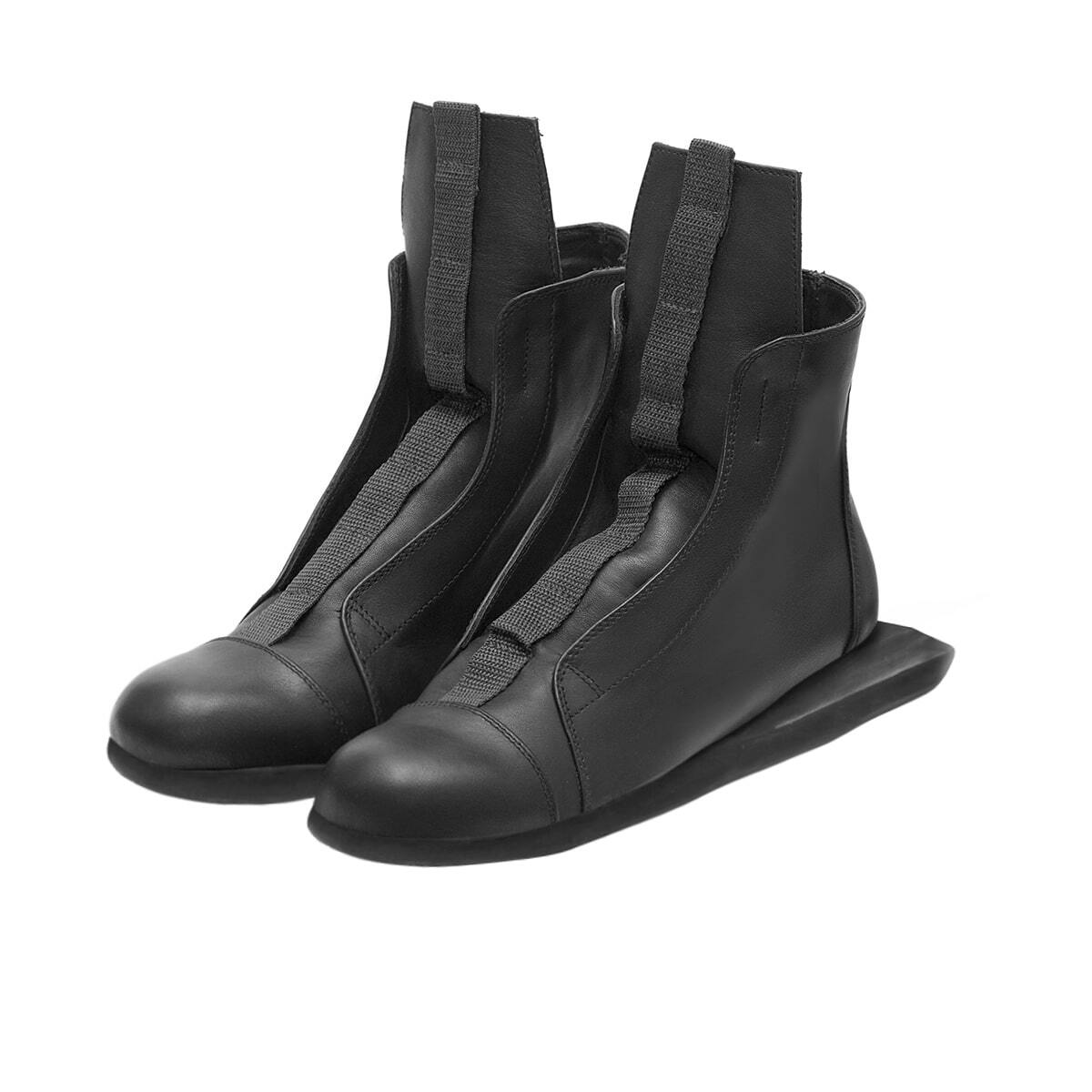 Кожаные ботинки с острым носом. Скошенный каблук, напечатанный с помощью 3-D принтера. Функциональная молния сзади.