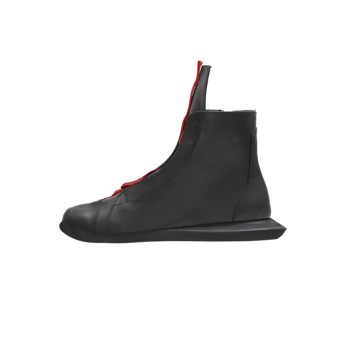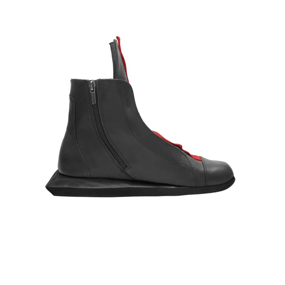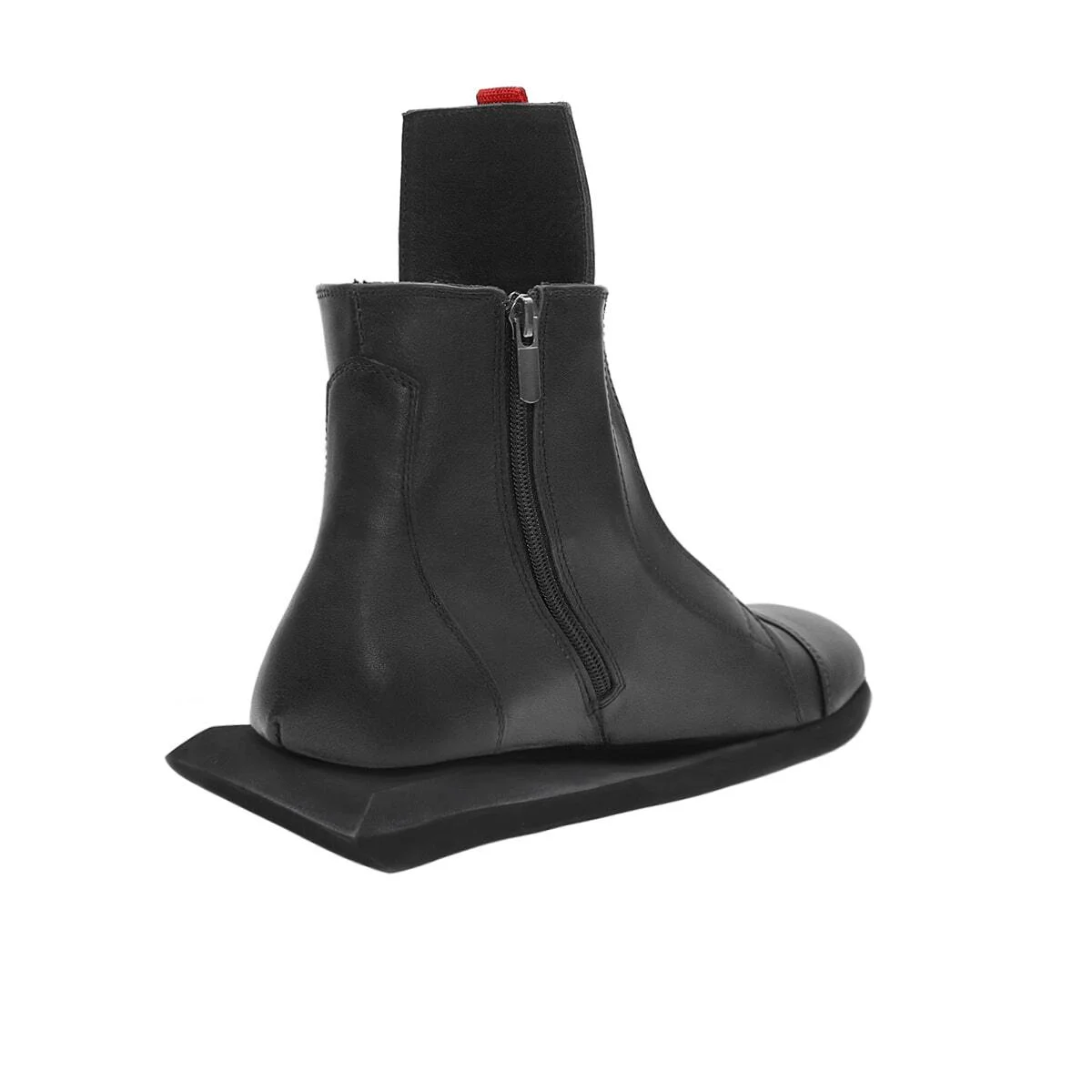 Кожаные ботинки с острым носом. Скошенный каблук, напечатанный с помощью 3-D принтера. Функциональная молния сзади.