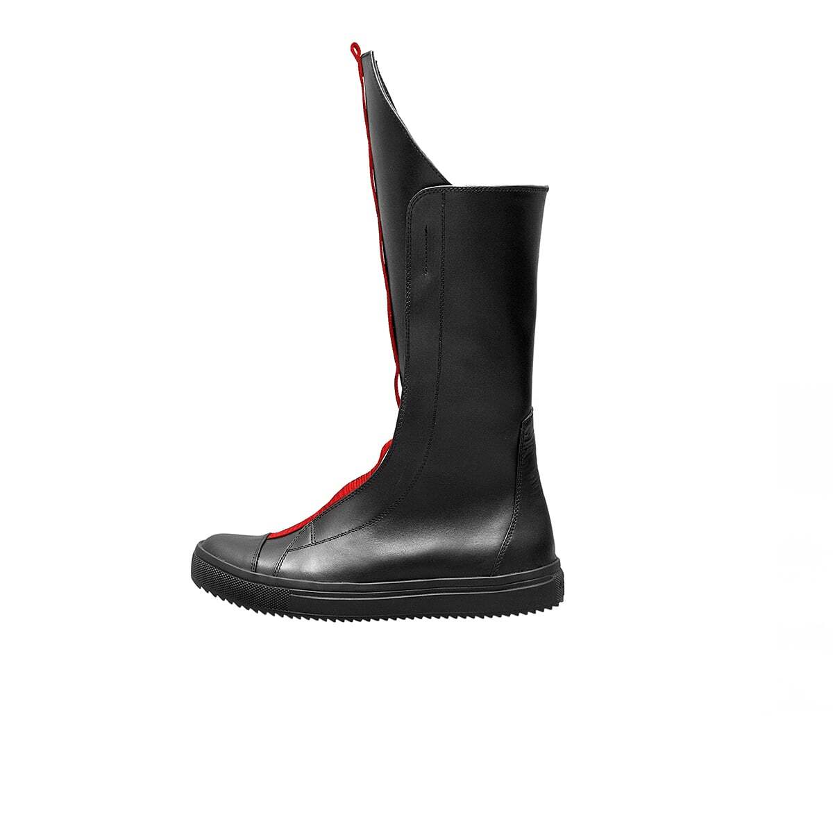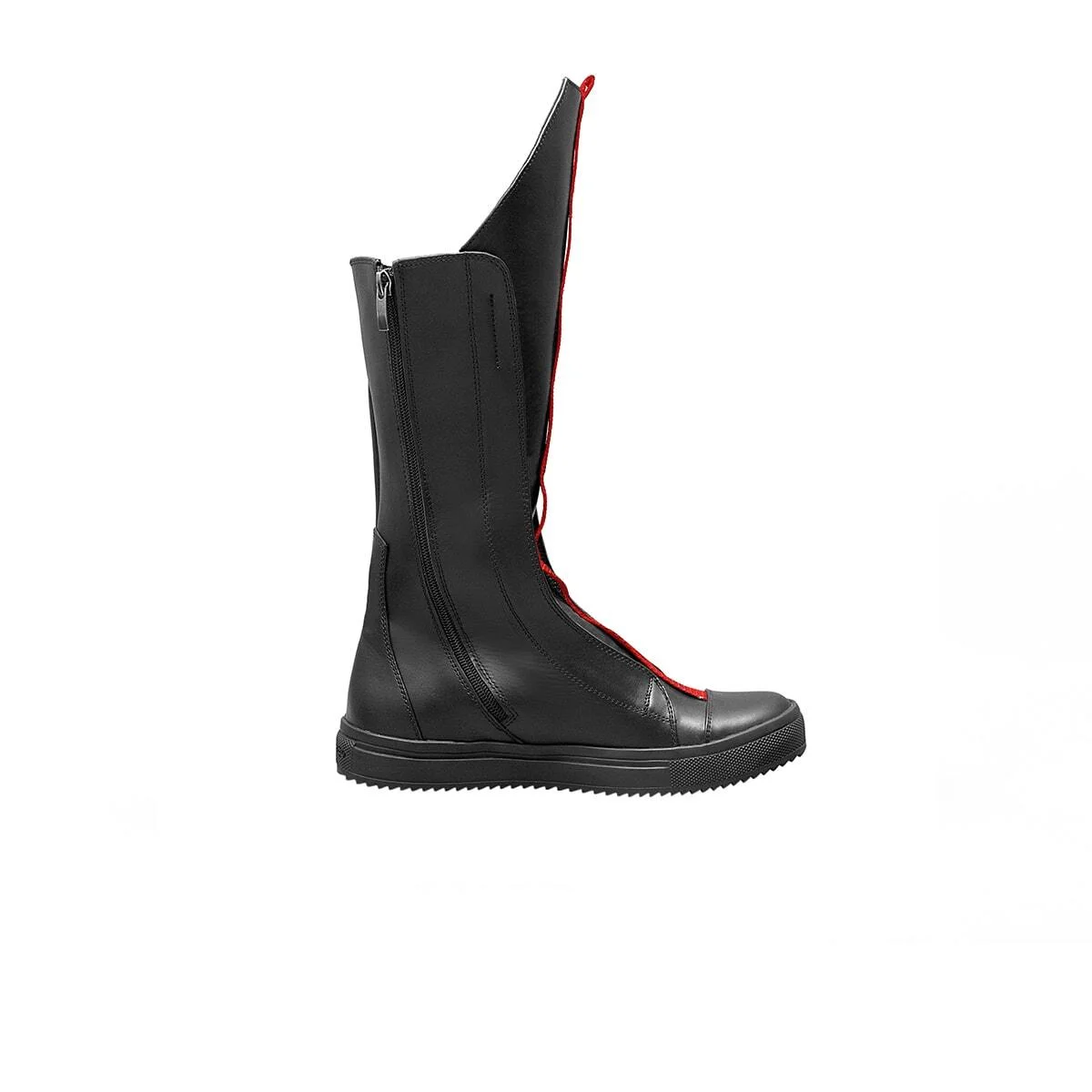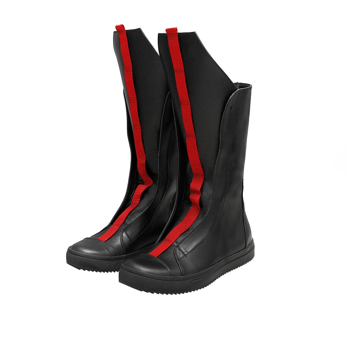 Высокие кожаные кеды с асимметричным верхом, декорированные лентой, функциональная молния, подошва из легкой износостойкой резины ТЭП.