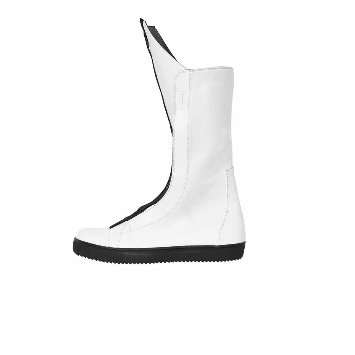 Высокие кожаные кеды с асимметричным верхом, декорированные лентой, функциональная молния, подошва из легкой износостойкой резины ТЭП.