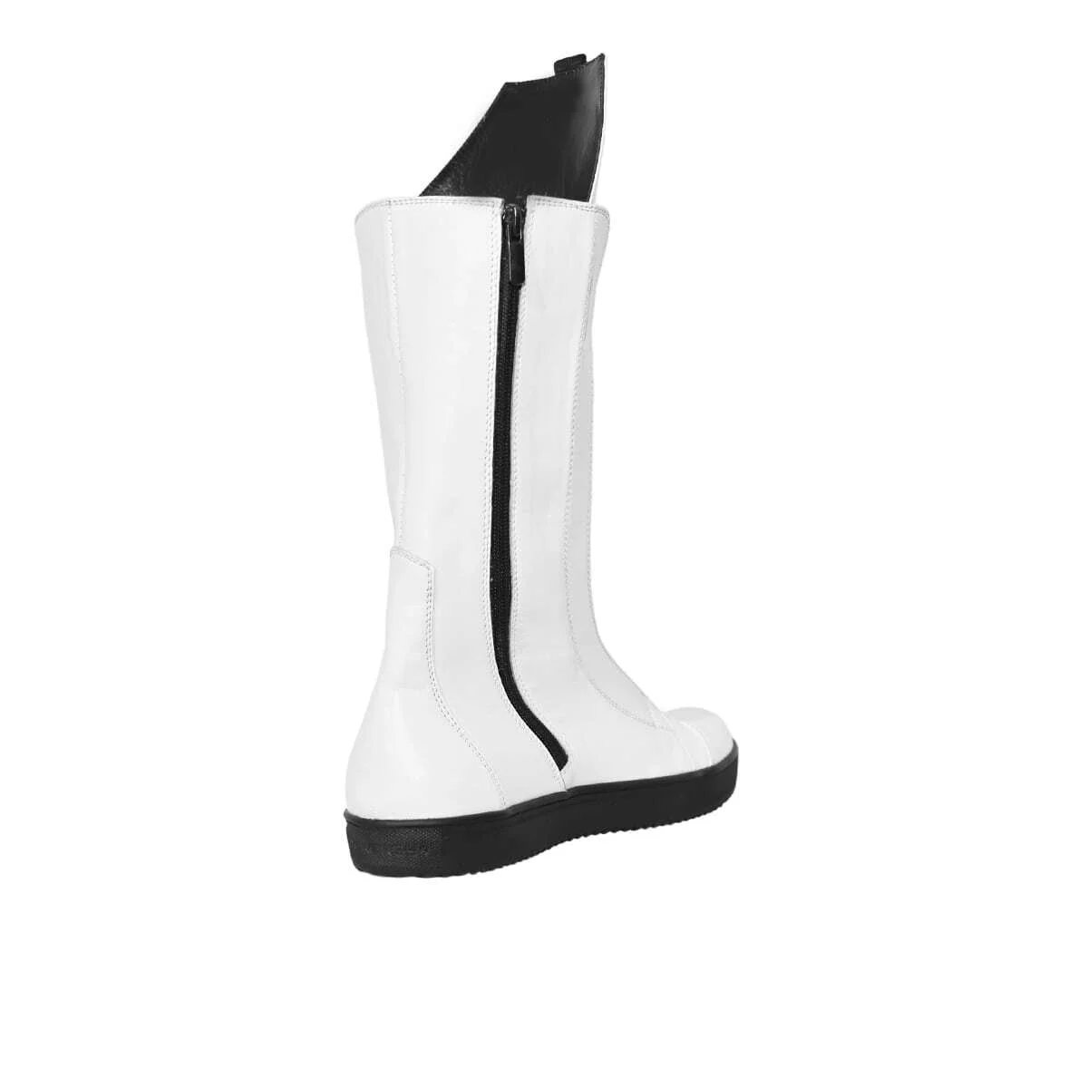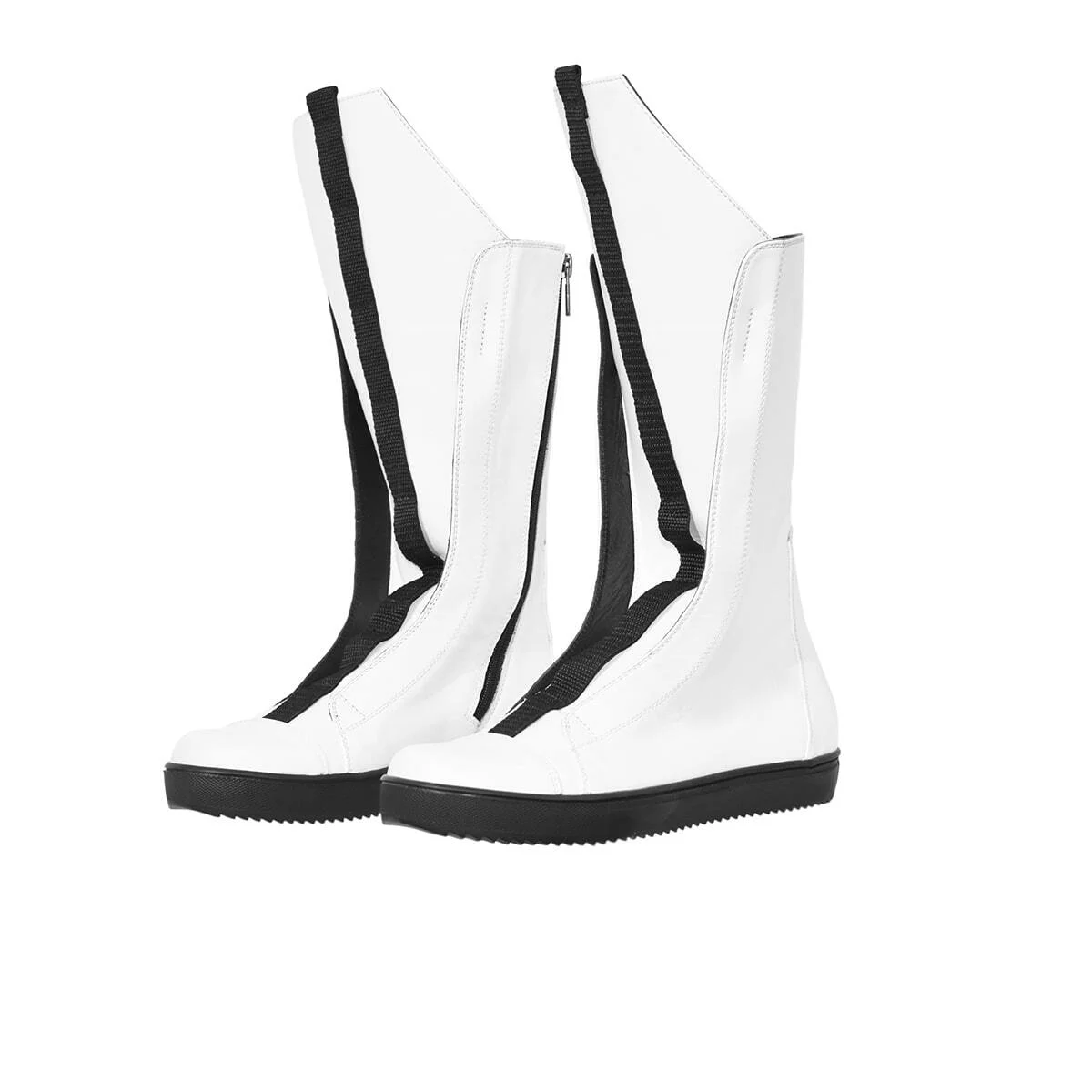 Высокие кожаные ботинки на молнии, с застежкой на липучке. Эластичная резинка сзади. Рельефная подошва из легкого износостойкого материала PU.