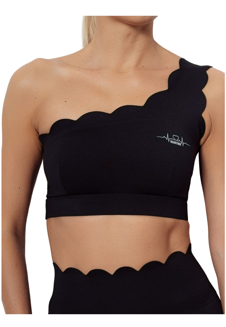 Спортивный топ "Marusia" выполнен из плотного эластичного и гладкого материала. Не просвечивает. Изделие средней длины нестандартного кроя на одно плечо. Благодаря съемным чашечкам обеспечивает хорошую поддержку груди. Отличительной особенностью новой коллекции является лазерная обработка края....