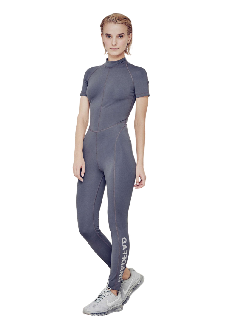 Спортивный комбинезон в футуристичном стиле в дымчатом окрасе. Материал: бифлекс матовый стрейч Active Cool.